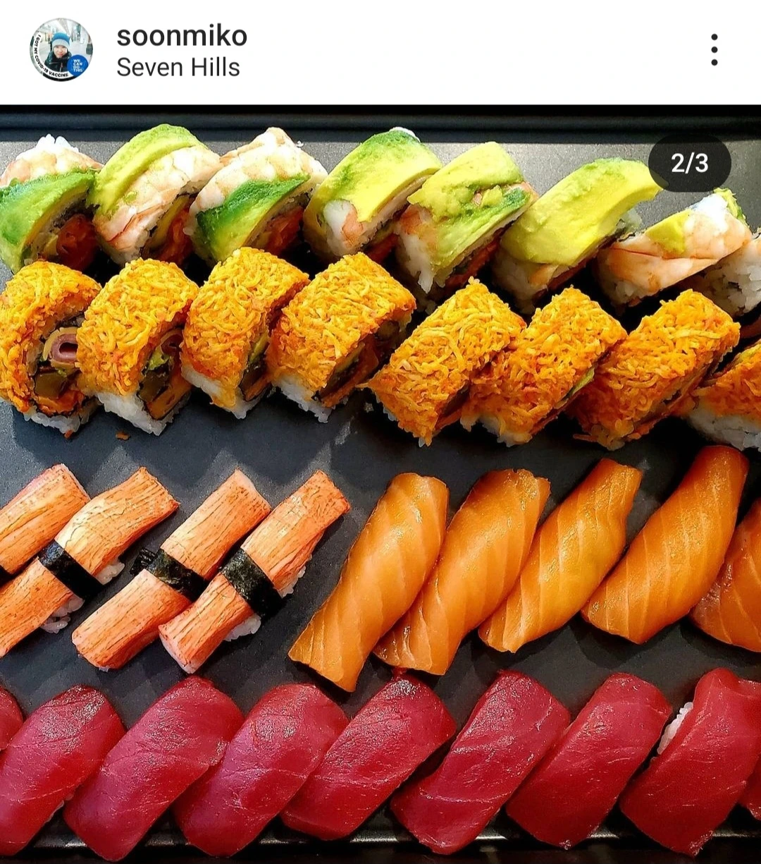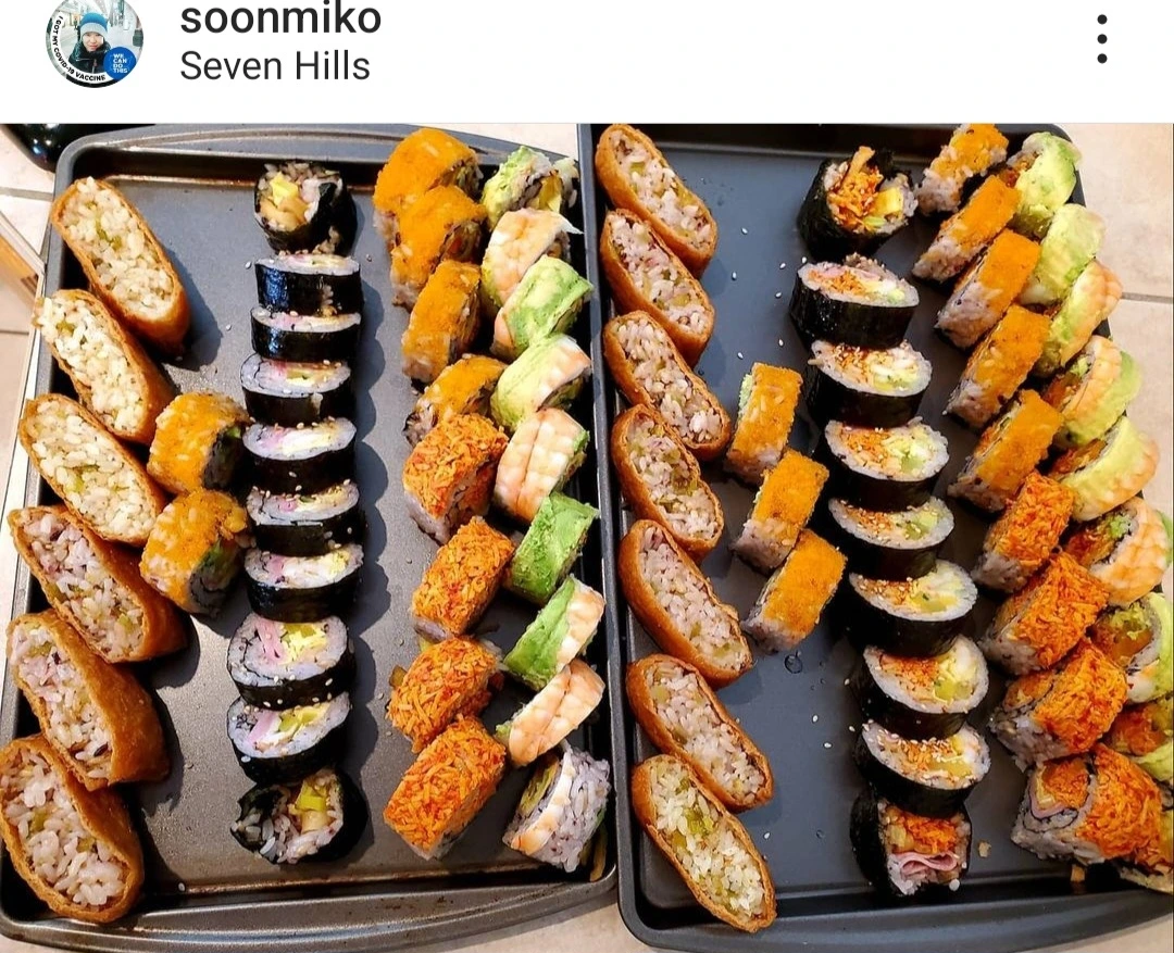 튜나 살몬 니기리, 맛살과 새우 아보카도 롤