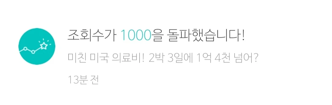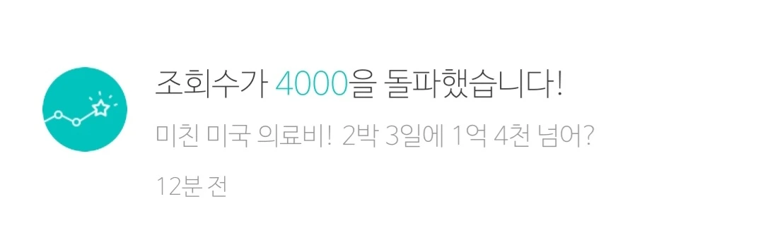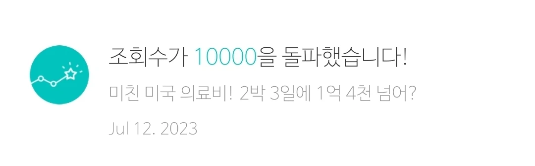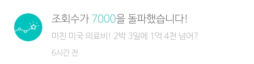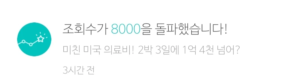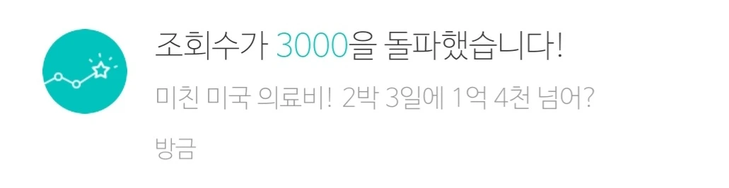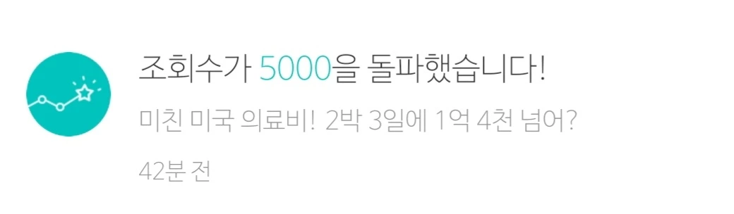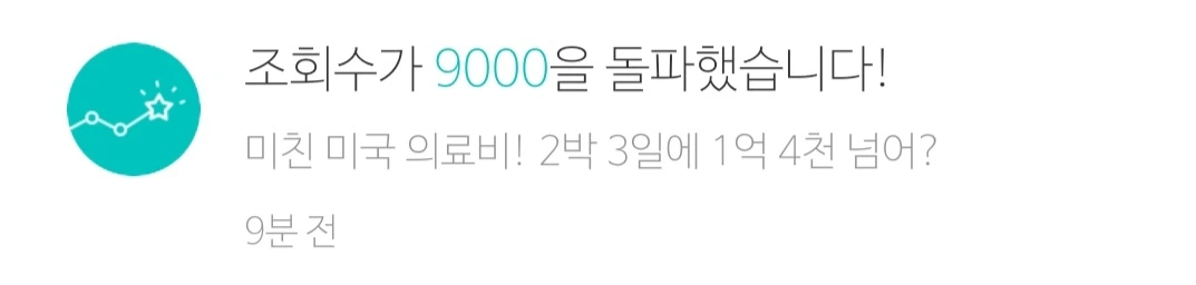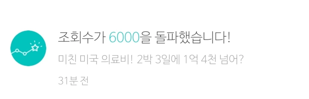 미국 시간으로 오후 1시 좀 넘어서 미국 의료비에 관한 짧은 글을 올렸다. 다섯 시간 만에 "조회수 1000을 돌파"했다는 알람이 왔다. 그 후 30분쯤 지나서 2000 돌파, 10분쯤 더 지나 3000 돌파, 좀 주춤하다가 4000 돌파, 글을 올린 지 9시간쯤 되니 5000, 10시간이 지나니 6000을 돌파했다는 알람이 왔다. 자고 일어나니 9000까지. 만뷰 찍어주면 좋겠다는 쓸데없는 욕심이 채워졌다.