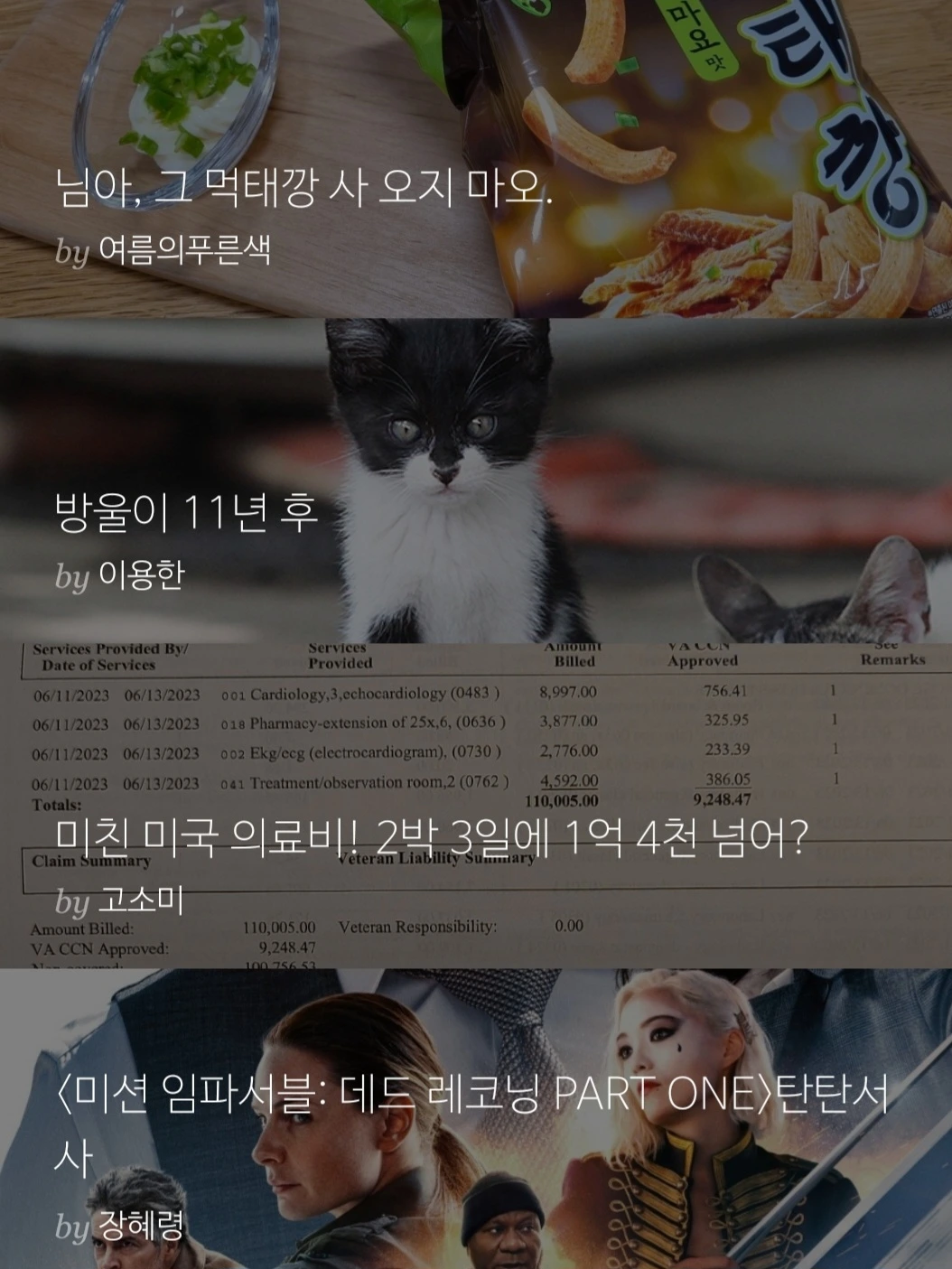 오늘 이 알람을 통해 깨달은 게 있다면, 글의 수준과 관계없이 제목이 자극적일 경우 조회수가 올라가며, 그 조회수는 라이킷과 댓글에 큰 영향을 미치지 않는다는 것.아마도 정성과 시간을 들여 쓴 글이 아니라, 이 놈에 나라 말도 안 되는 병원비 때문에 홧김에 쓴 짧은 글이라 그럴 수도 있겠다. 아니면 그간 신변잡기처럼 쓴 글이 별 매력이 없어 구독으로 이어지지 않았으니, 한 가의 글이 조회수가 만뷰를 찍었는데, 별다른 변화가 없는 건 전적으로 내 잘못일 수 있겠다.