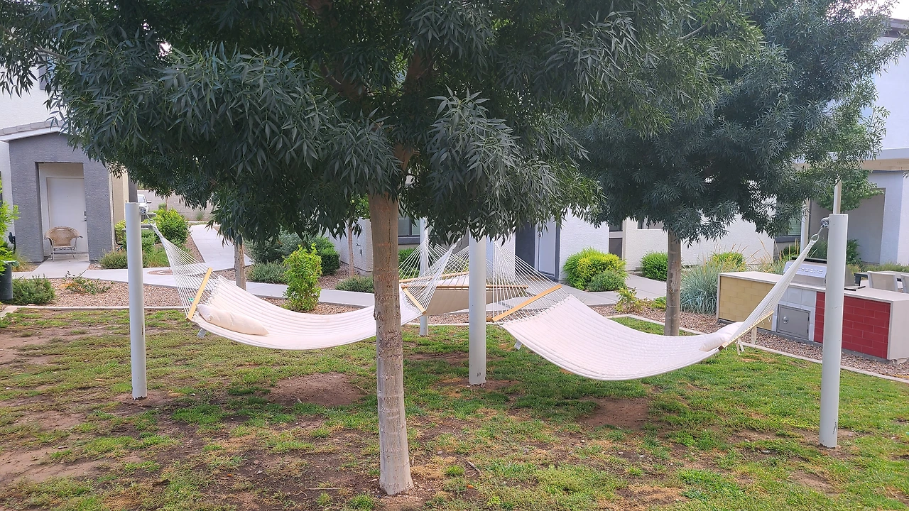 그늘에 설치해 놓은 해먹이 바로 집 앞에 있다. 이삿짐 나르다가 해먹에 누워 맞는 산들바람이 이 불편한 공간과 관계에 적응하는데 힘을 실어줬다. 예전 집의 산책로가 그리워질 땐 집 앞 미니 풀장이나 클럽하우스 옆 풀장에서 수영하면 될 테지. 어딜 가든 일장일단은 있고, 대체제는 있기 마련이다. 적응을 한다는 것은 불편함이 익숙해지고 새로운 걸 찾아내는 게 아닐까? 관계도 공간도.