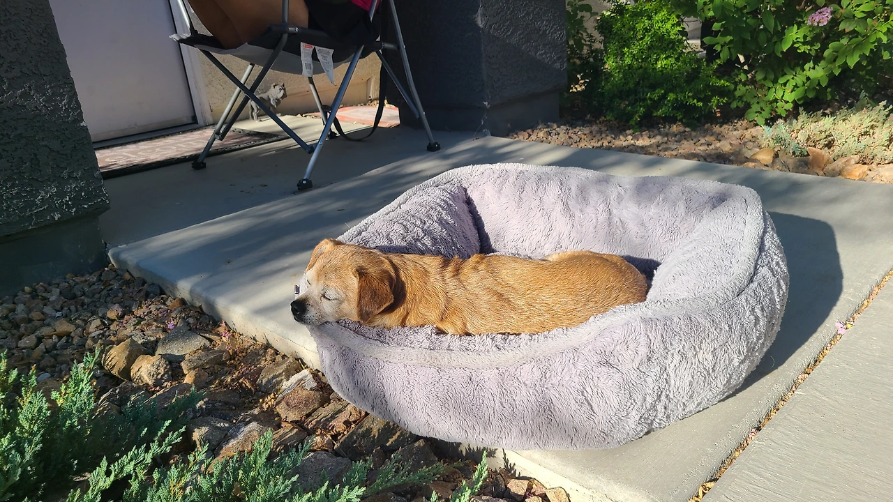 집 앞 수영장 집으로 들어가는 길에 강아지 인형이 어느 집 앞에 놓여 있었다. 방석 위에서 미동도 없이 있길래, 진짜 인형인 줄 알았다. 눈을 깜빡이기 전까지는. 저리 얌전히 있는 강아지는 첨 본다.