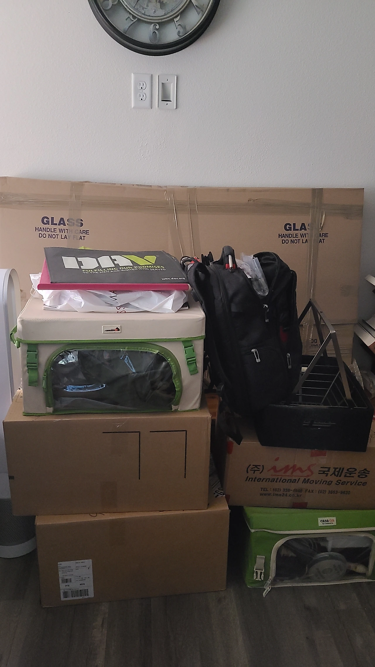 예쁘게 놓여져야 할 사진은 다른 짐과 자리 경쟁 중 더 이상 들어갈 곳이 없어 거실과 주방에 박스채로 남겨진 짐. 저 박스들을 보고 있자니, 심난하기 짝이 없다. 이사 준비하면서 정리하고 왔어야 했는데, 시간 없다는 핑계로 다 들고 왔다.