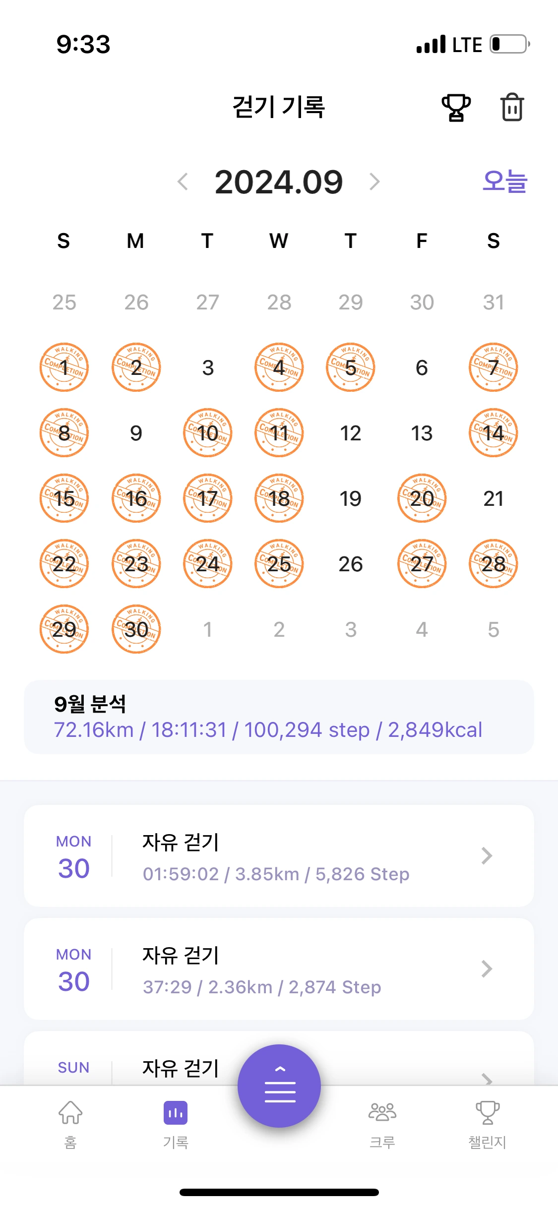 일주일 5회 30분 걷기를 목표로 했습니다!