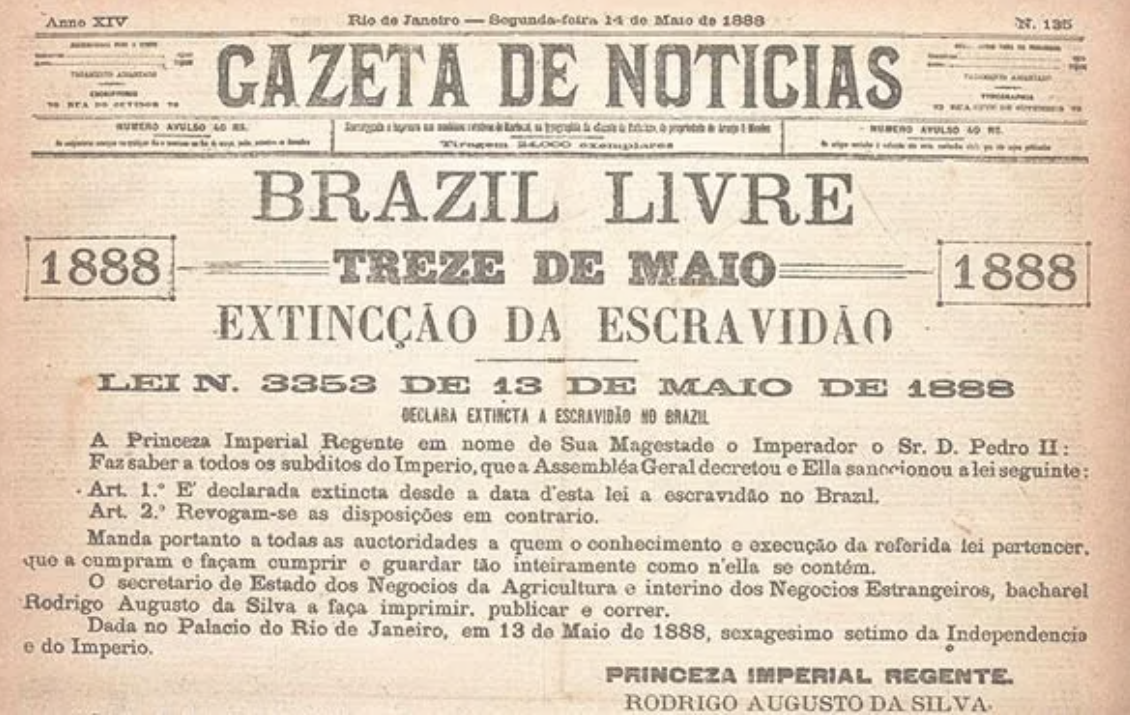 Art. 1.: É declarada extinta desde a data desta lei a escravidão no Brasil.