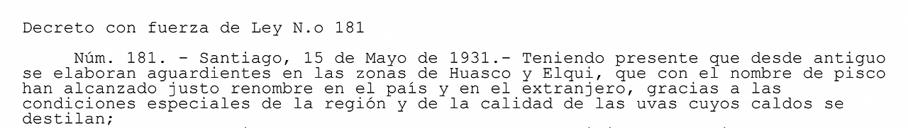 우선 칠레의 '피스코 브랜딩 역사'는 1930년대로 거슬러 올라갑니다. 1931년 5월 15일, 카를로스 이바네스 대통령은 법령 제181을 통해 피스코 보호법을 발표합니다. 이 법의 주요 내용은 피스코의 원산지가 칠레라는 걸 법으로 정하고, 칠레 특정 지역에서 재배된 상품만이 피스코라 불릴 수 있다고 주장한 것입니다.