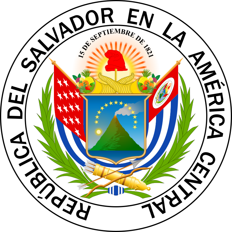 엘살바도르 국장을 보면, 우리나라에 비해 조금 더 복잡한 걸 알 수 있습니다. 바깥쪽에는 약간 짙은 노란색으로 'REPÚBLICA DE EL SALVADOR EN LA AMÉRICA CENTRAL'이 쓰여있습니다. 한국어로 바꾸면 ‘중미의 엘살바도르 공화국’ 이란 뜻입니다. 삼각형 바깥쪽을 보면 5개의 파랑-하얀색 국기가 있는데, 이는 중미 5개국을 의미합니다. 글자에도 ‘중미’를 써놓은걸 보면, 중미 정체성을 강조하는 것처럼 보이기도 합니다. 참고로 이 파랑-하얀색은 중미 5개국 모든 국기에 들어가 있는 색이기도 합니다.