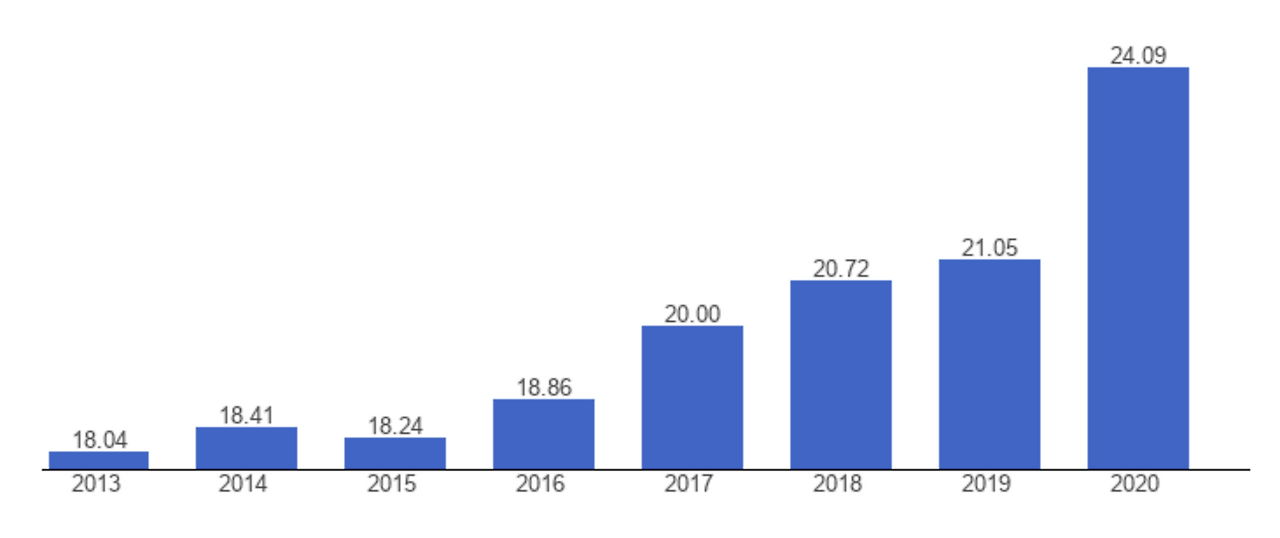 특히 부켈레는 엘살바도르 경제에 중요한 부분을 차지하는 송금 부문에 주목했습니다. 위 <표 1>이 나타내는 것처럼, 송금은 엘살바도르 경제의 24%나 될 만큼 높은 비중을 차지합니다. 특히 코로나19 이후 미국에서 엘살바도르로 보내는 송금액이 크게 늘어났는데, 금액으로만 보면 2020년 한 해 동안 총 60억 달러나 되는 금액이 엘살바도르로 보내졌다고 합니다.