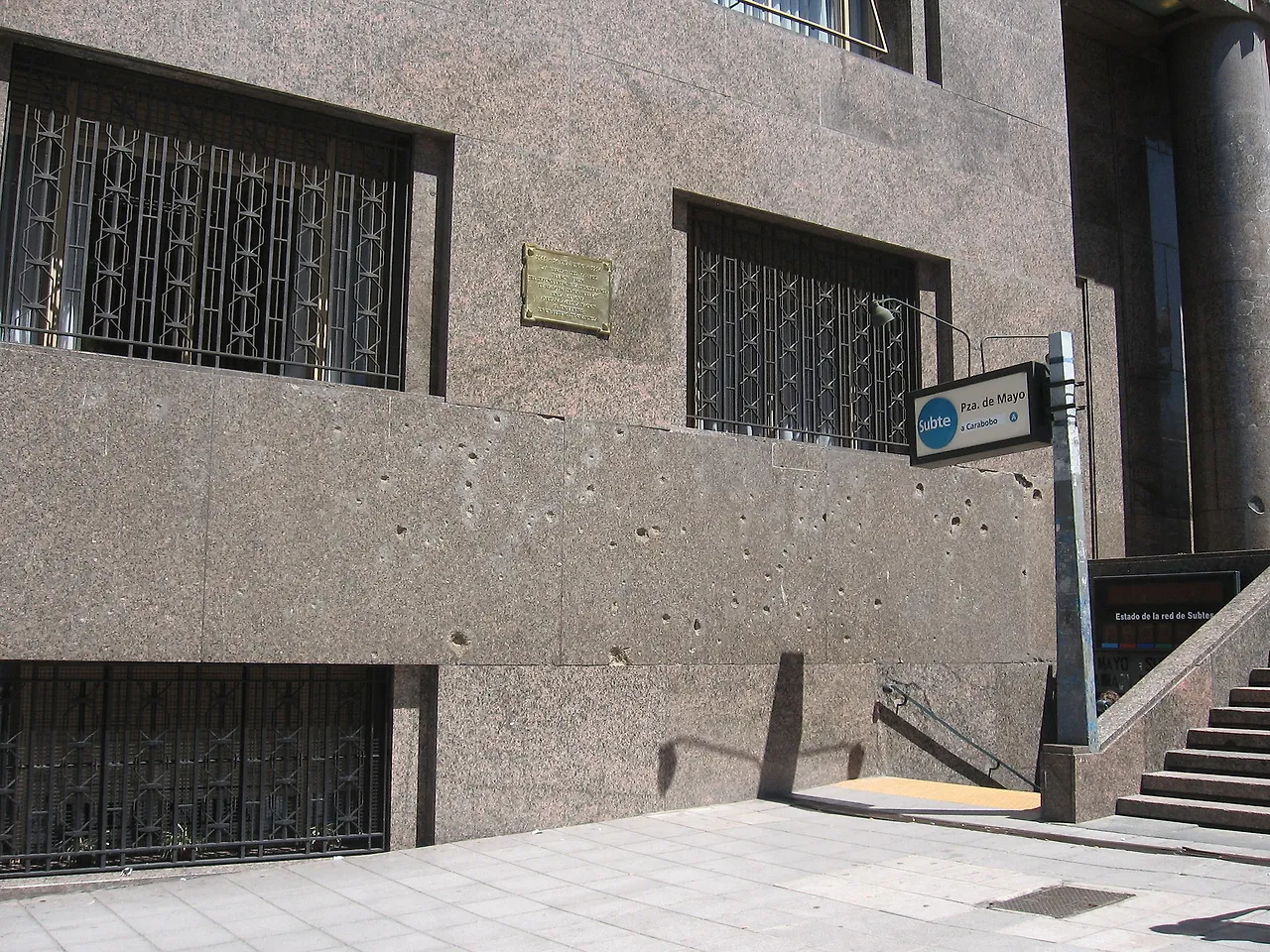 6월 16일 아침. 후안 페론을 제거하기 위해 시작된 공습은 평범한 일상을 보내던 사람들에게도 엄청난 피해를 입히게 됩니다. 트램을 타고 근처를 지나던 사람들이 폭격으로 전원 사망했고, 여기엔 어린아이들도 많이 포함되어 있었습니다. 기록에 따르면, 이날 부에노스아이레스 중심부의 하늘을 가로질렀던 전투기들은 총 100개 이상의 폭탄을 투하했다고 합니다. 당시 공격이 워낙 강력했기 때문에, 폭격을 당한 건물들에서는 아직까지 그날의 흔적이 남아있을 정도입니다.