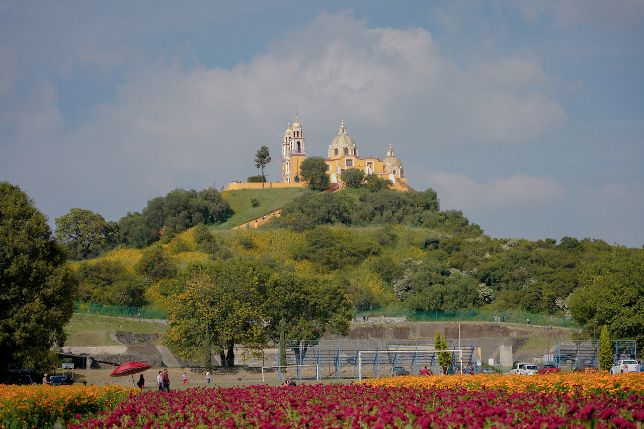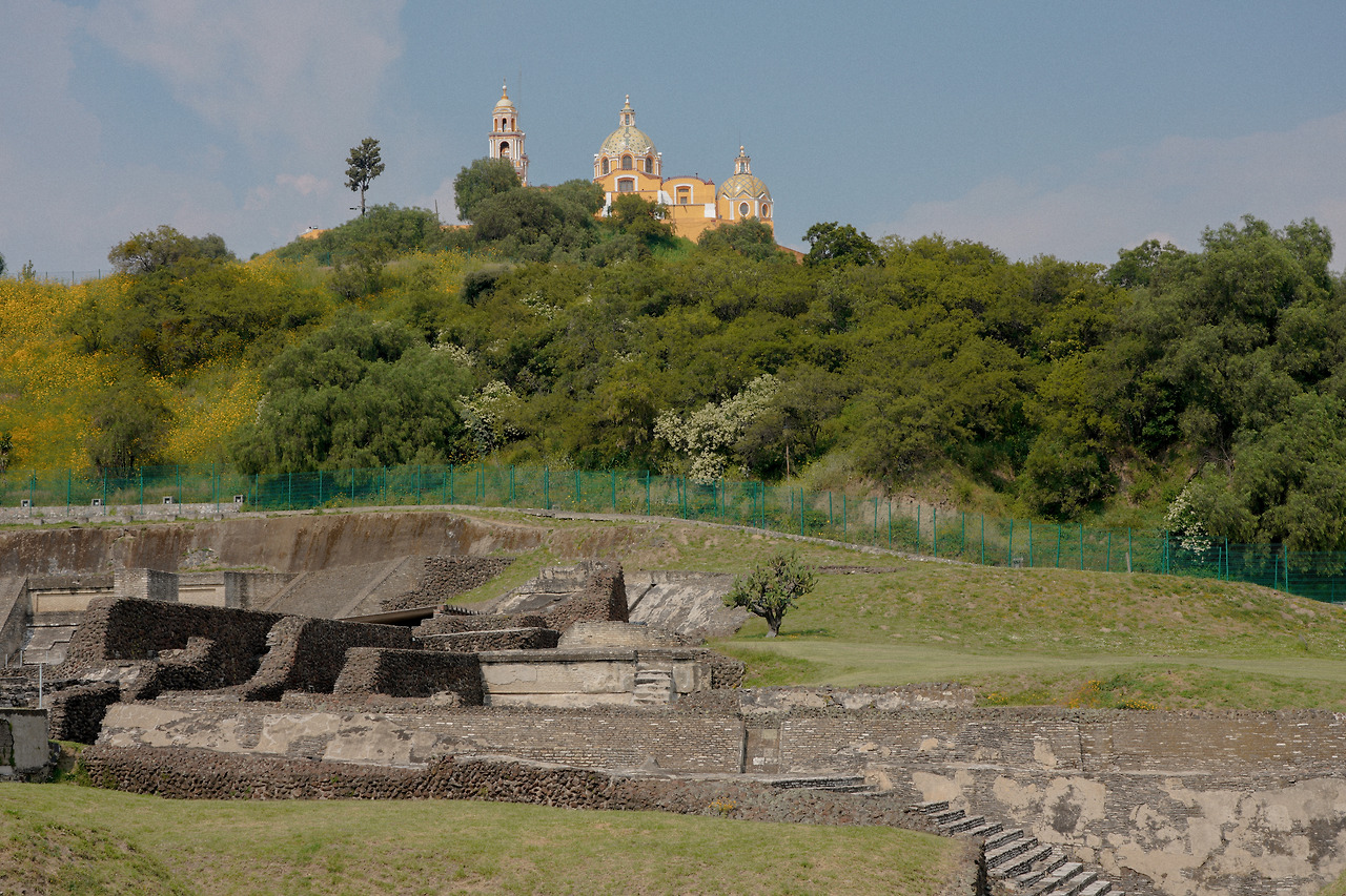 촐룰라는 이렇게 셈파수칠로 유명하지만, 사실 세계에서 면적이 가장 넓은 피라미드가 있는 곳이기도 하다. 인터넷에 촐룰라를 검색하면 가장 많이 나오는 사진이 높은 언덕 위에 위치한 노란색 성당인데, 사실 이는 언덕이 아닌 피라미드 위에 세워진 것이다.