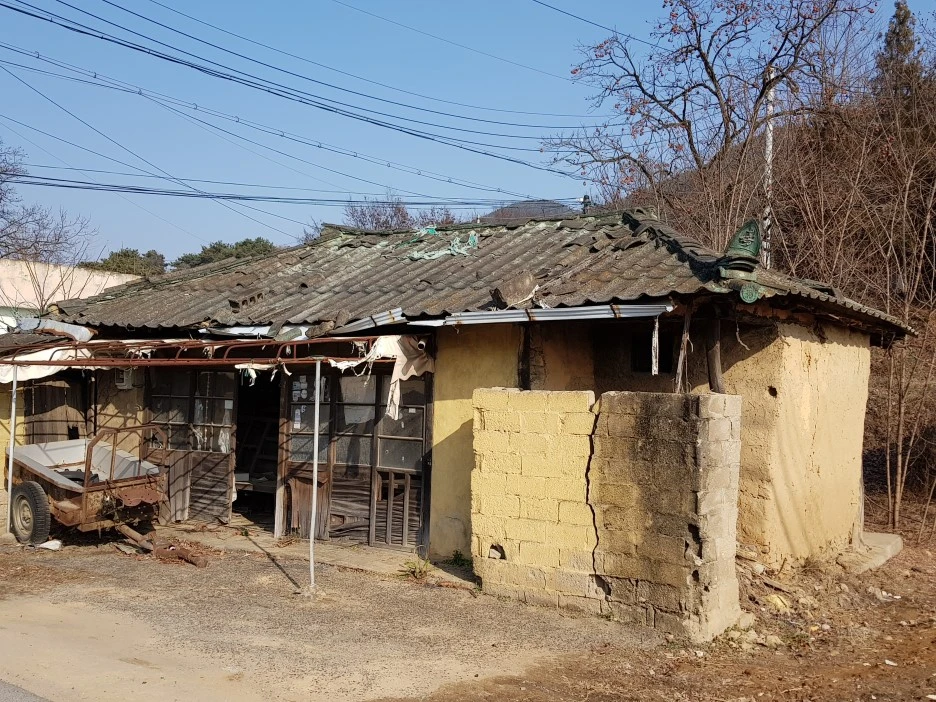 길은 중부내륙고속도로를 오른쪽으로 바라보면서 북쪽으로 이어진다. 인적이 드물다. 길가의 낡은 집은 그나마도 폐가가 된 곳이 많다.