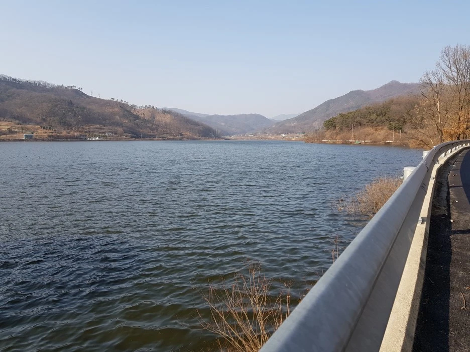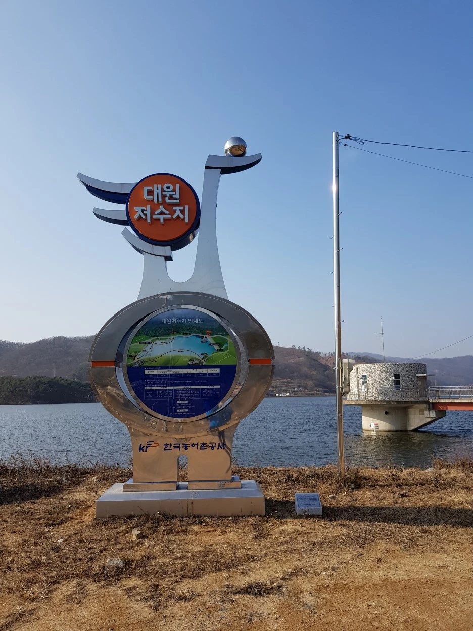 야트막한 언덕을 오르니 '대원저수지'가 나타난다. 고속도로 선산휴게소에서 아래를 내려다보면 호수같은 곳이 보이는데, 바로 이 저수지다. 그렇다면 여기서 선산휴게소도 멀지 않을 것이다.