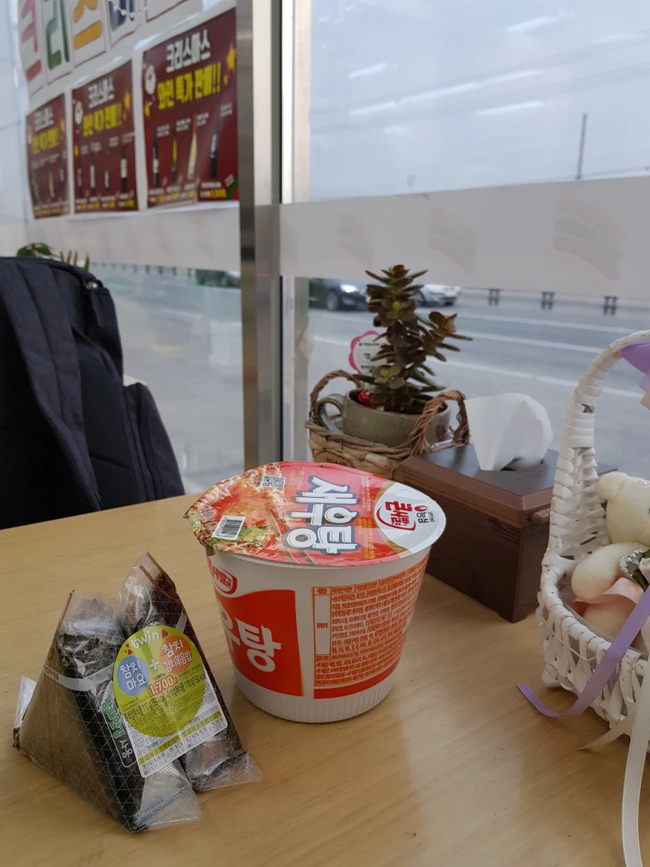걸은지 한 시간쯤 지나 아침을 해결하러 편의점에 들어섰다. 평소 기름기나 칼로리가 부담스러워 라면은 잘 먹지 않지만, 몸 고생의 장점은 신체적으로든 심리적으로든 먹고 싶은 건 뭐든 먹을 수 있다는 것이다.