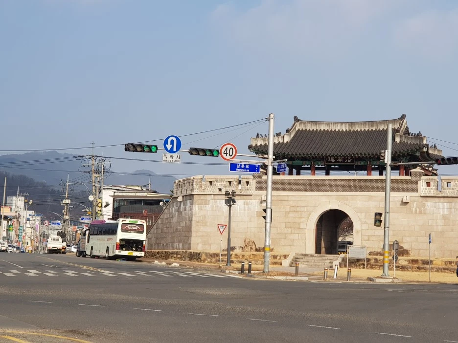 자리를 털고 일어나 다시 걷기 시작했다. 오래지 않아 저 앞으로 선산이 보인다. 오전 목표는 무난히 달성할 것 같다. 선산읍성 남문 앞에 도착한 시간이 11시 반쯤이었다.
