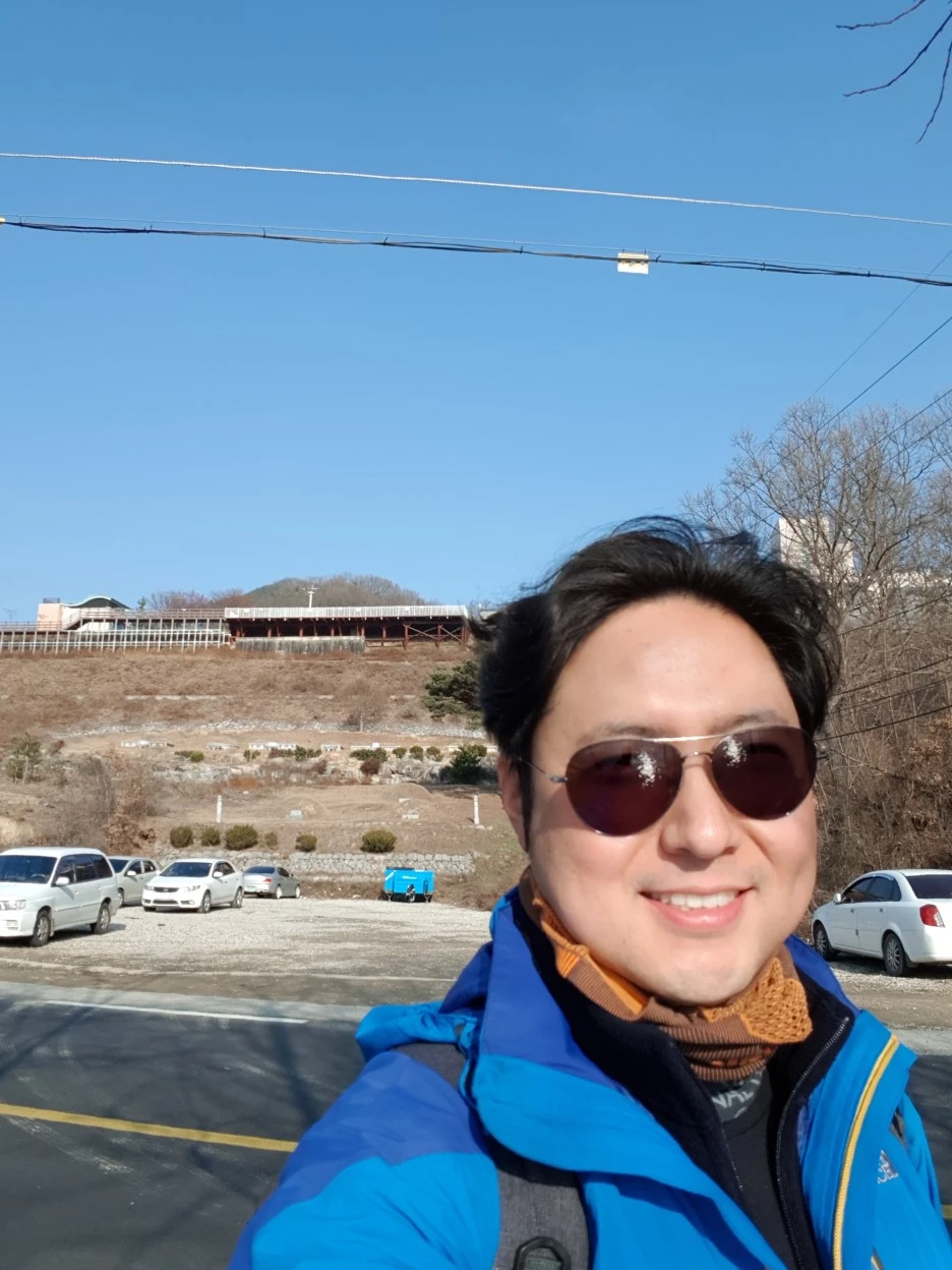 드디어 선산휴게소 아래에 도착했다. 이 휴게소는 내게 제법 추억이 있는 장소다. 2015년 김해외국어고등학교로 반 년 가량 출강하면서, 매번 저 난간 앞에서 기지개를 켜고 스트레칭을 했다. 그러던 곳에 걸어서 왔다니, 그 감흥을 사진으로 남기지 않을 수 없었다.