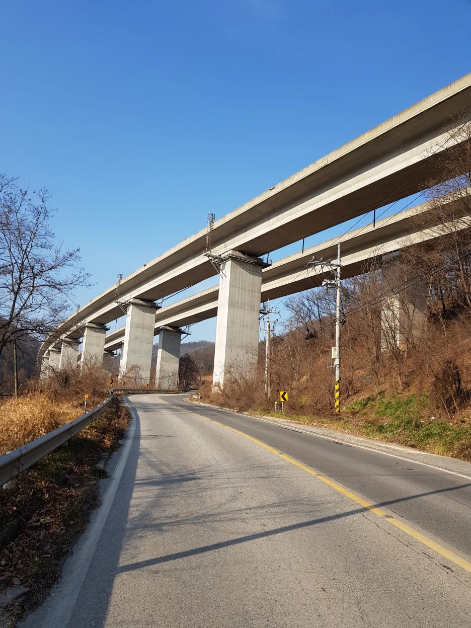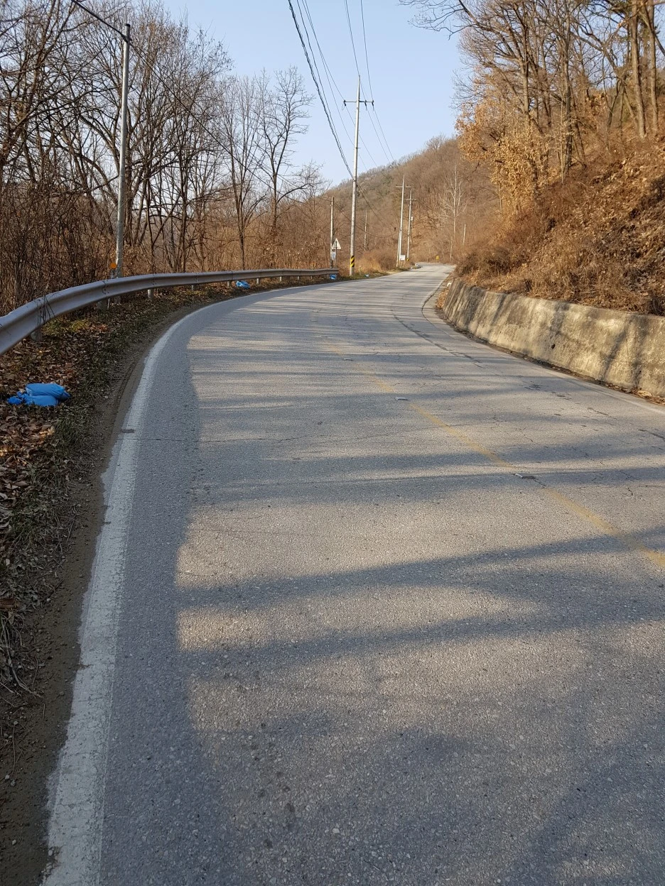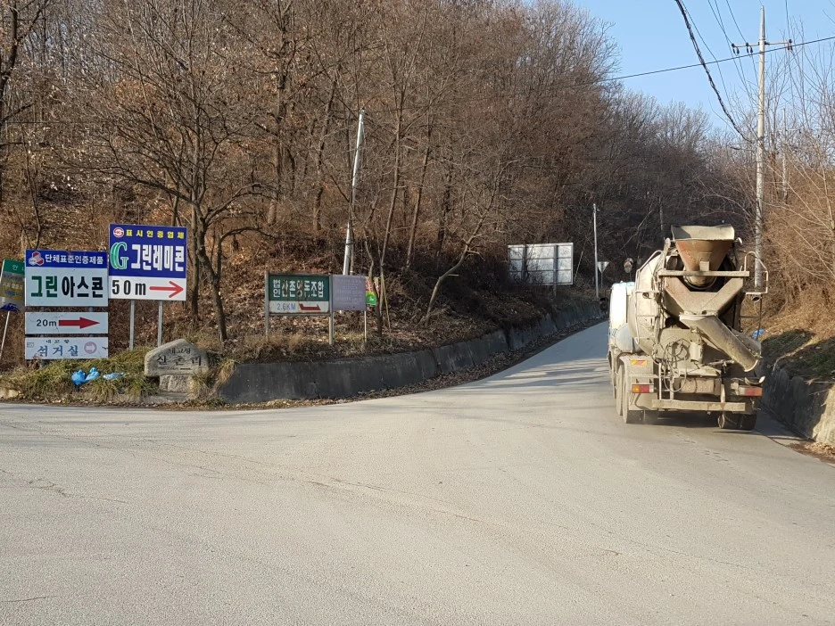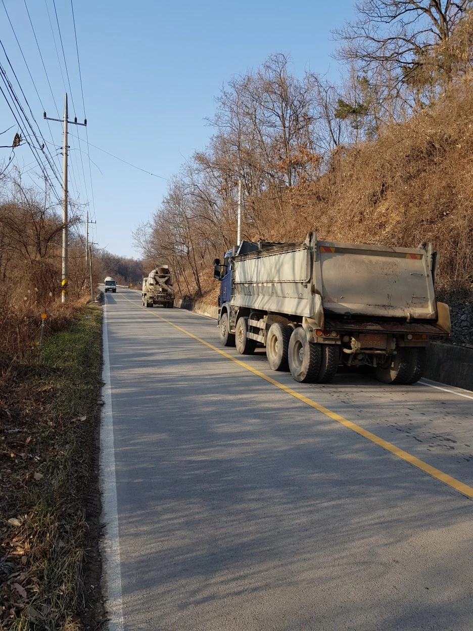 고갯길의 정상에 가까워서야 비로소 이유를 알게 됐다. 아스콘과 레미콘 공장이 모여 있다. 바로 이곳으로 건설차량들이 드나들고 있었다.
