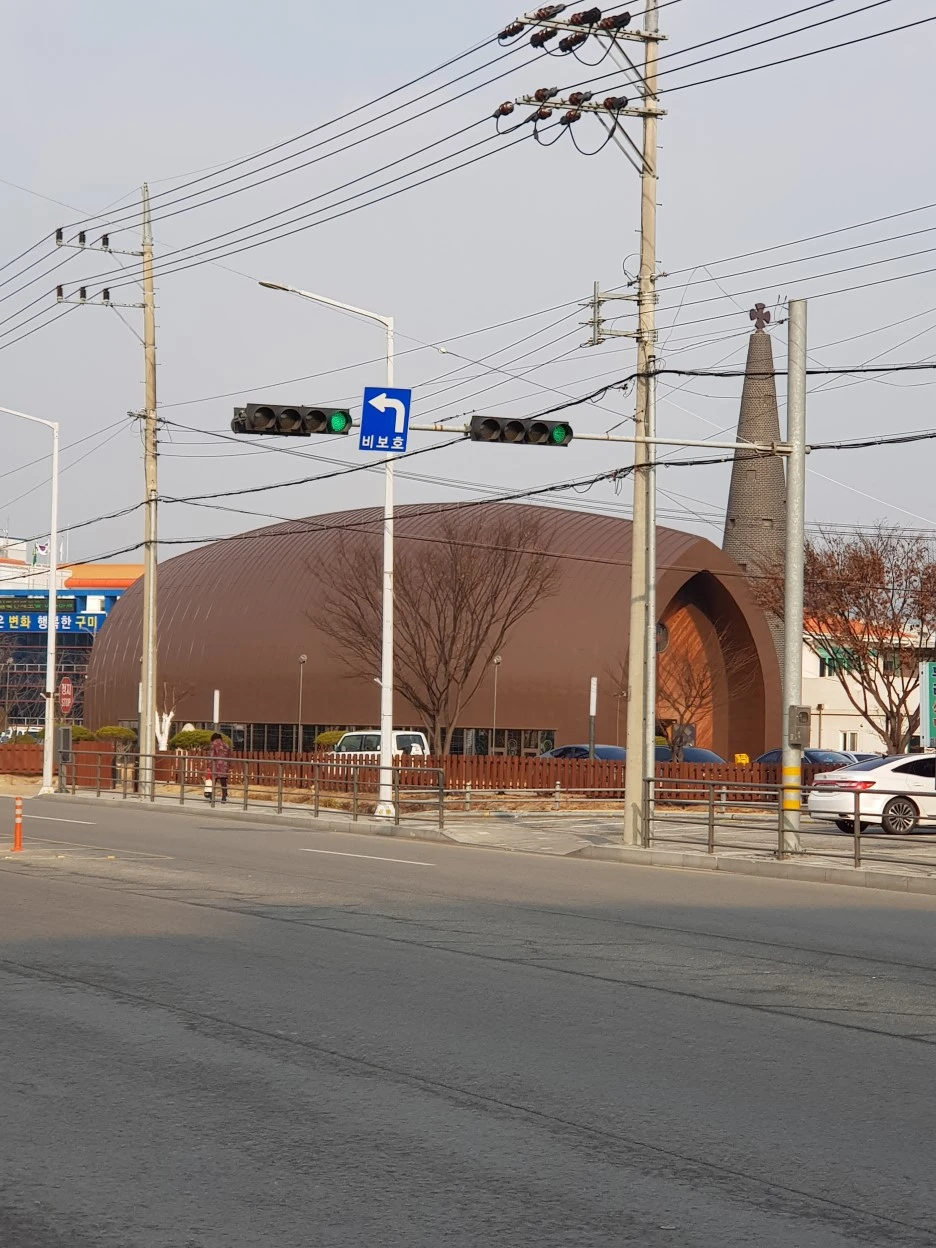 길 건너로 특이하게 생긴 건물이 보인다. 딱정벌레 같기도 하고 밤톨 같기도 하다. 가만 보니 성당이다. 잠시 쉴 겸 성당 마당으로 들어섰다.