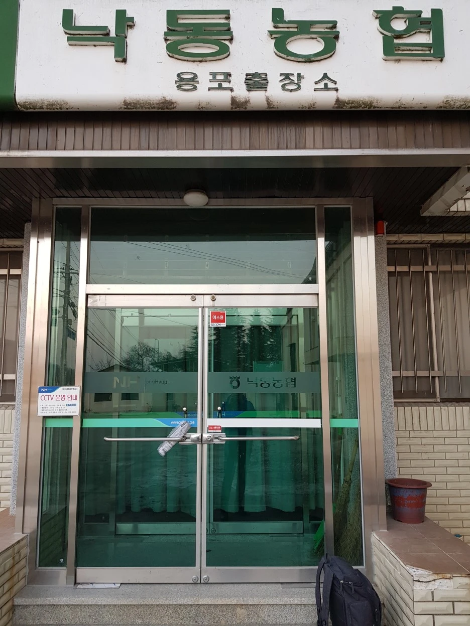 멀지 않은 곳의 '낙동농협 용포출장소'도 문이 닫혀 있었다. 신문이 꽂혀 있는 걸로 보아 종일 그랬을 터였다. 계단에 맘편히 앉아 아픈 발을 주물렀다. 입구 옆 통로 안쪽에는 소변기가 재치 있게 자리 잡았다.