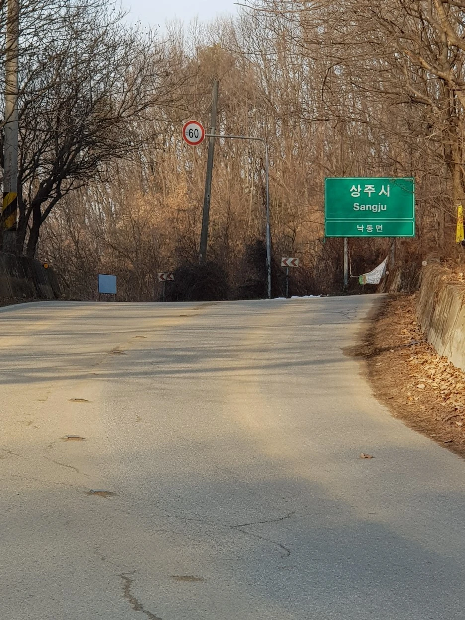 몸이 식기 전에 다시 출발한다. 그나마 이제부터는 내리막이라 수월할 것이다. 출발하자마자 상주로 진입한다는 표지가 나타난다. 상주시 낙동면이다.