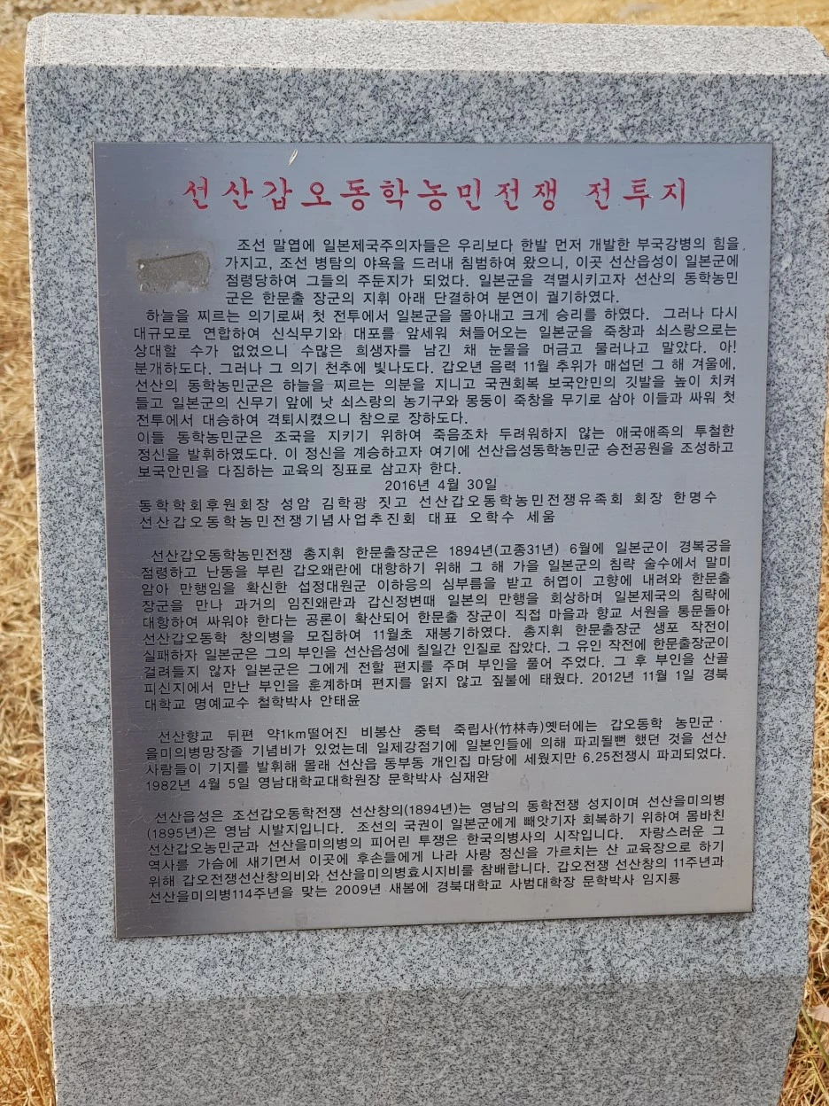 하지만 당시 동학농민전쟁은 전라도만이 아닌 전국 단위의 봉기였다. 선산의 동학농민전쟁 재조명처럼, 지역마다 향토의 역사를 발굴하고 홍보하는 일은 우리의 역사를 더 생생하고 풍부하게 하는 일이다.