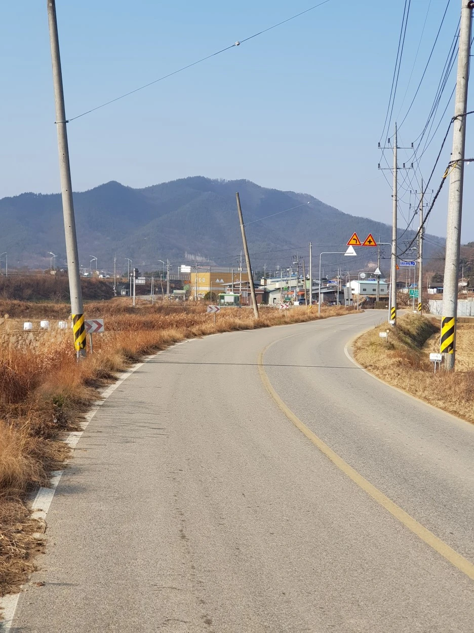 드디어 축사 밀집지대와 산길을 벗어났다. 이제 상주 시내로 곧장 난 직선 도로를 걷는다. 이 길만도 1.4km에 달한다.