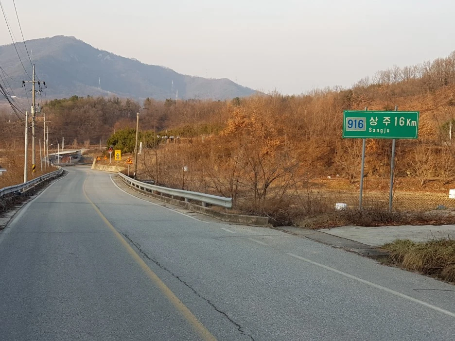 중부내륙고속도로 아래로 오르막길이 나타난다. 이제 곧 행정구역상 상주시로 접어들게 될 것이다.