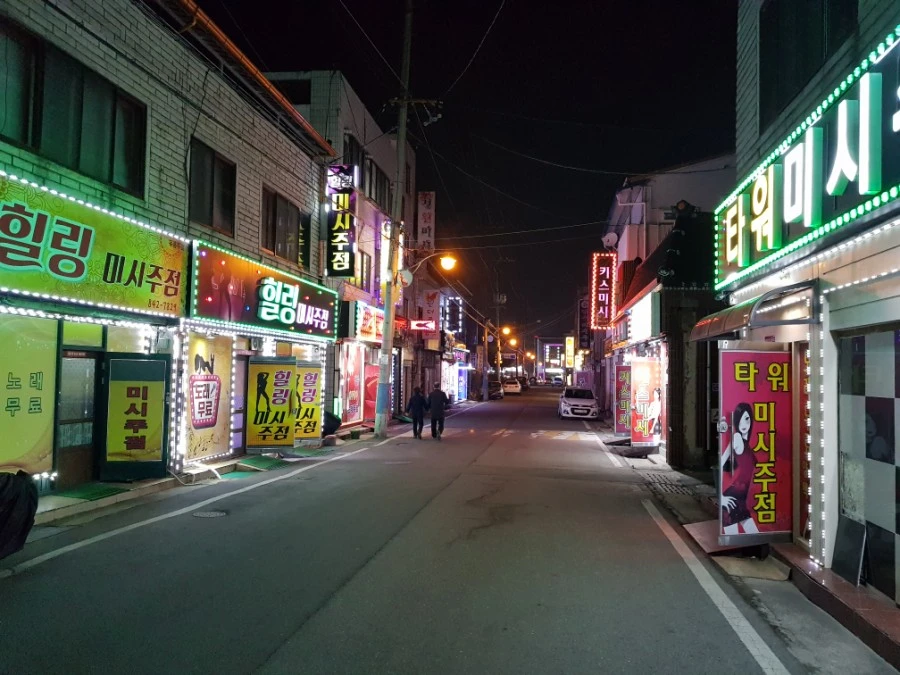 드디어 숙소 인근까지 왔다. 유흥가 밀집지역이다. 지도상으로 모텔이 밀집해 있기에 예상은 했다. 이 동네 유흥주점의 모토는 온통 '미시'다.