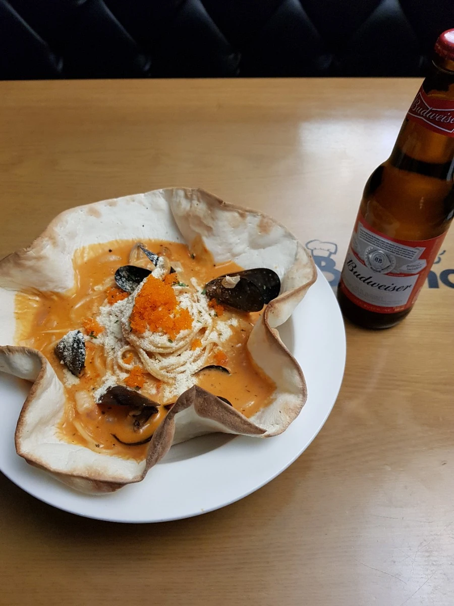 가장 잘 나가는 메뉴를 추천받아 '로제스페셜 스파게티'를 주문하고 맥주를 한 병 곁들였다. 또띠아에 담겨 나온 스파게티는 가격(8,900원)대비 품질이 괜찮았다.