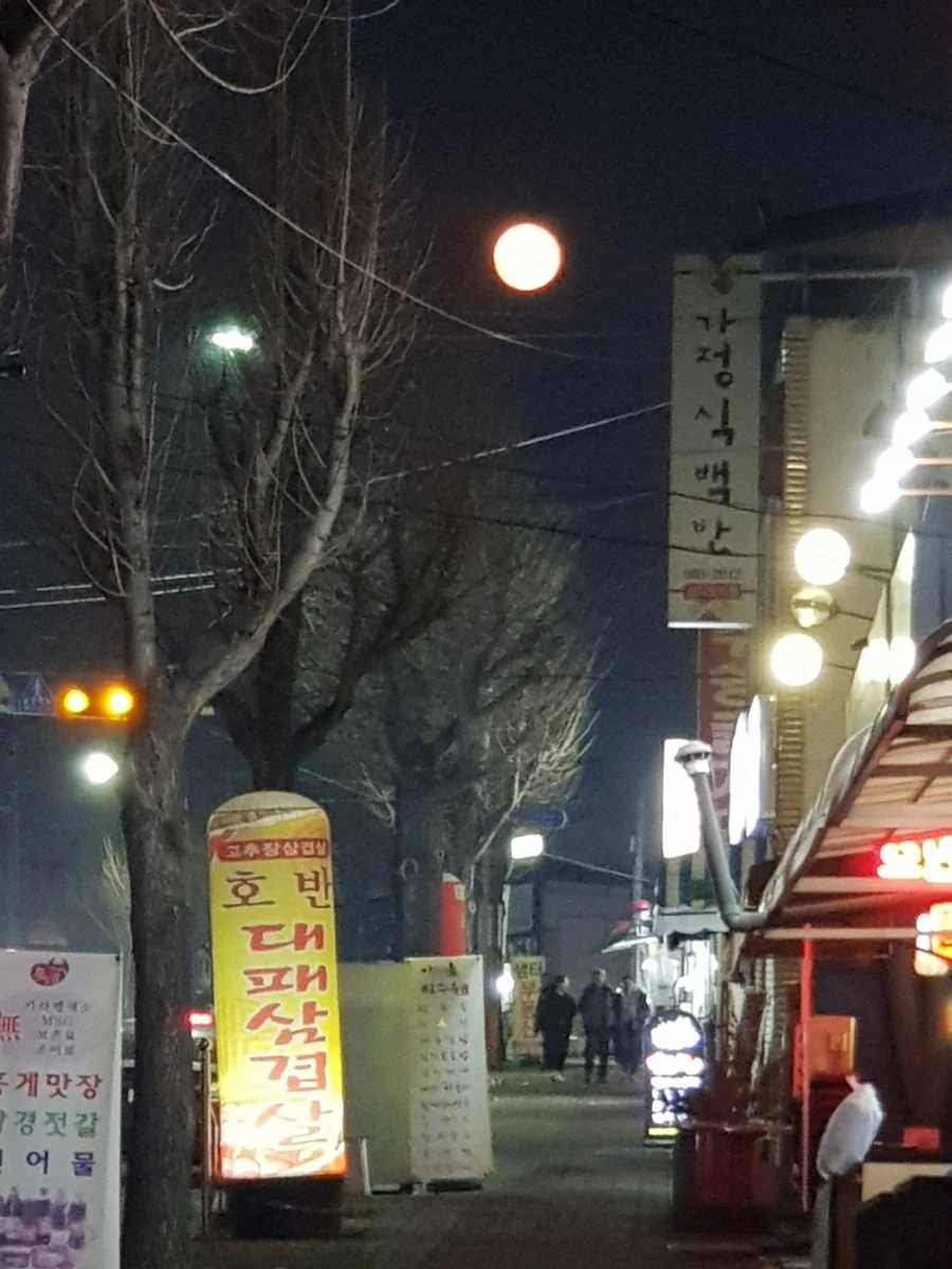 날이 어두워질수록 달은 한층 탐스러워졌다. 시내로 향하는 어느 언덕, 소박한 식당 골목 위의 보름달은 아련하면서도 정겨웁다.