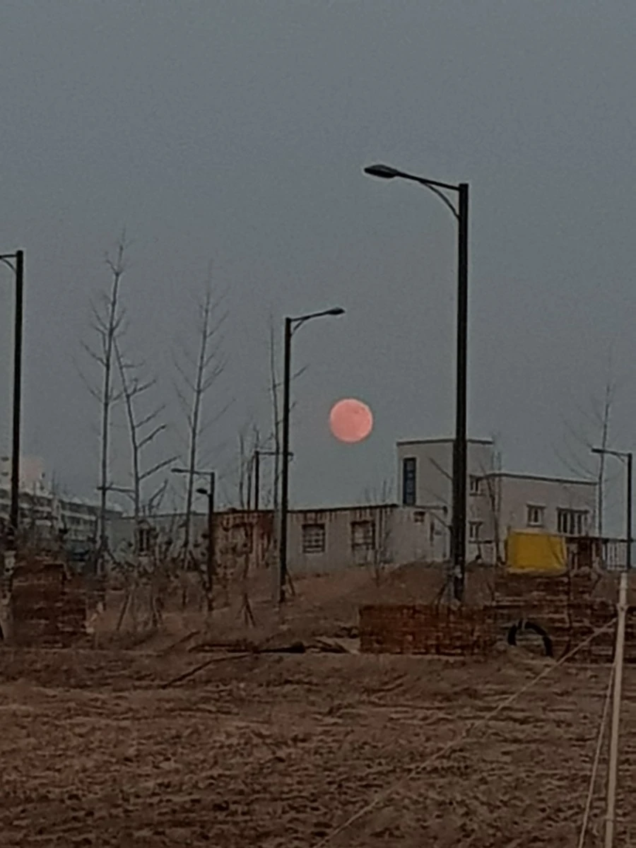 이 날은 동지인 동시에 보름이었다. 멀리로 붉은색 보름달이 떠 오른다.