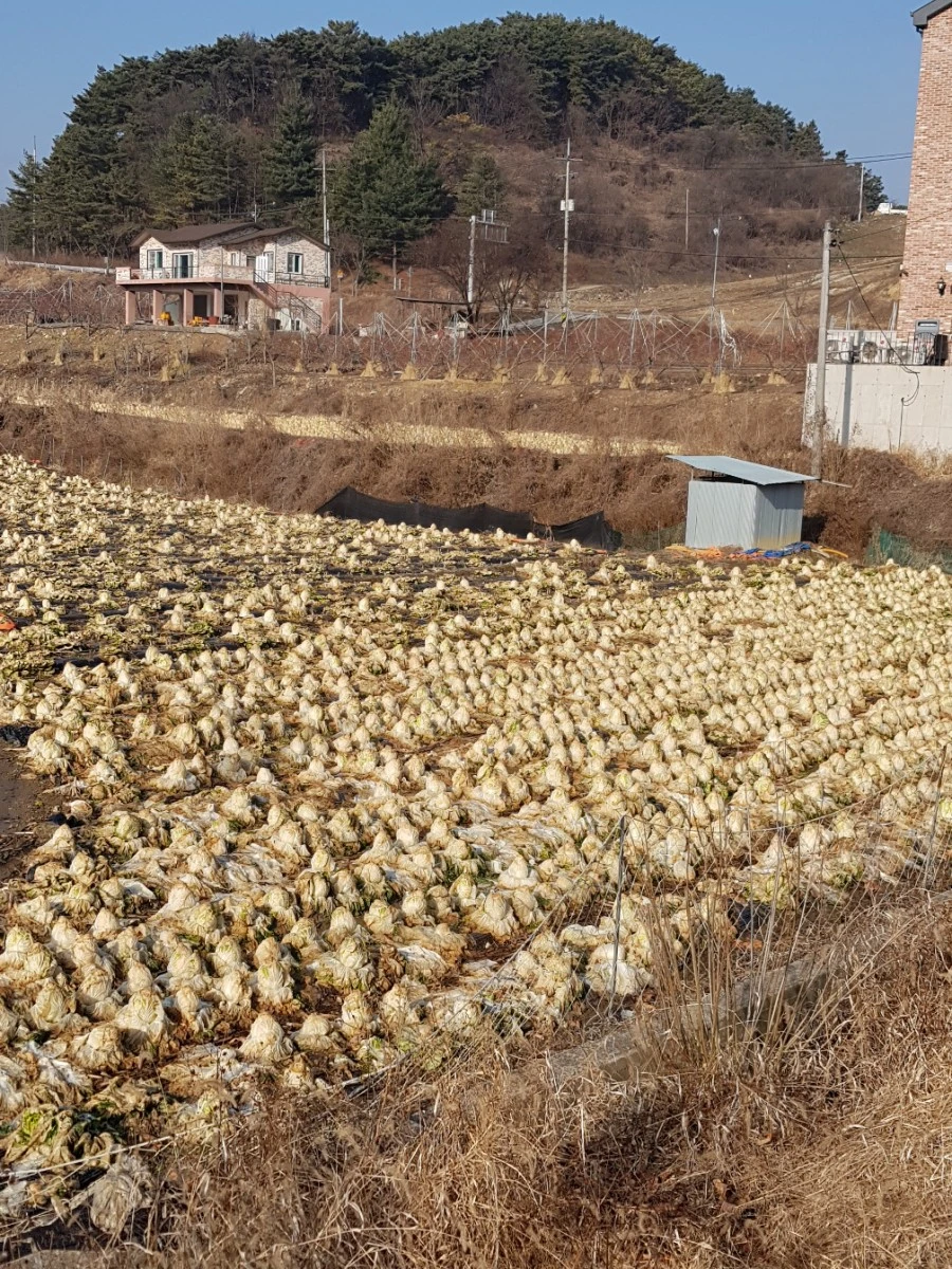 큰길을 벗어나면 '대안보 마을'이다. 배춧값이 폭락해 수확도 하지 않은 배추를 내버려 두거나 갈아엎는 곳이 많다더니 여기도 그랬다. 애써 기른 작물을 방치해야 하는 농부의 마음이 안쓰럽다.