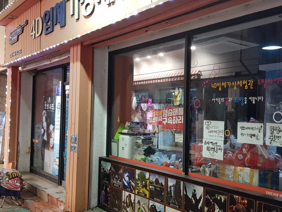4D 입체 게임장의 유리 안쪽에 '사법적폐 청산하자', '양승태를 구속하라'는 시위용 피켓이 붙어 있다. 일반적으로 이런 오락 관련 영업장에서는 보기 힘든 광경인데, 그만큼 주인의 신념이 확고하다는 뜻이다.