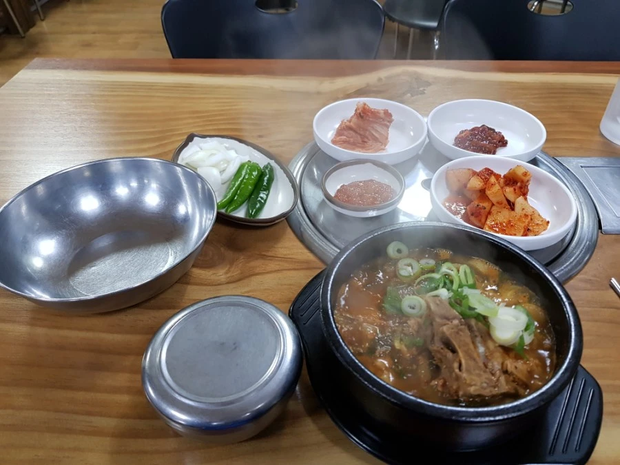 발이 몹시 아프고 굉장히 지친 터라 당장 눈앞의 뼈해장국 식당으로 들어섰다. 식당에 손님은 나를 제외하면 다른 테이블에 앉은 남자 두 명이었다. 서빙을 보는 아주머니와 손님 두 명 모두 외국인 노동자들이다. 한국인은 나와 주인 아주머니 둘 뿐이다. 주방에 계신 분은 국적을 확인하기 어려웠다.