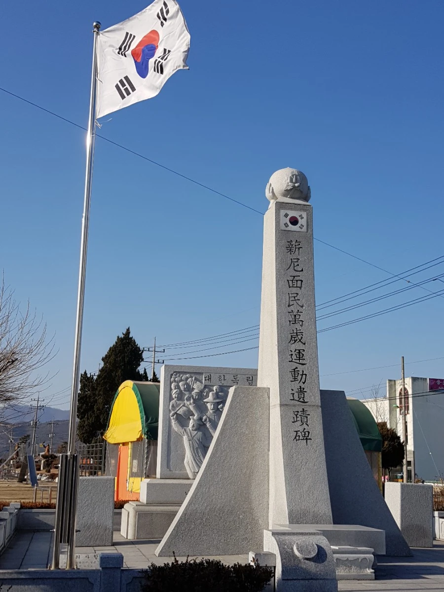 잠깐 길을 헤매다 만난 용원초등학교 앞에는 만세운동 기념비가 세워져 있었다. 3.1 운동 직후인 4월 1일, 이곳 주민 200여 명이 모여 독립선언서를 낭독하고 만세운동을 했는데 이를 기념하려 1985년 '신니면민 만세운동 유적비'를 세우고 2006년부터 만세운동 재현행사를 해 오고 있다.