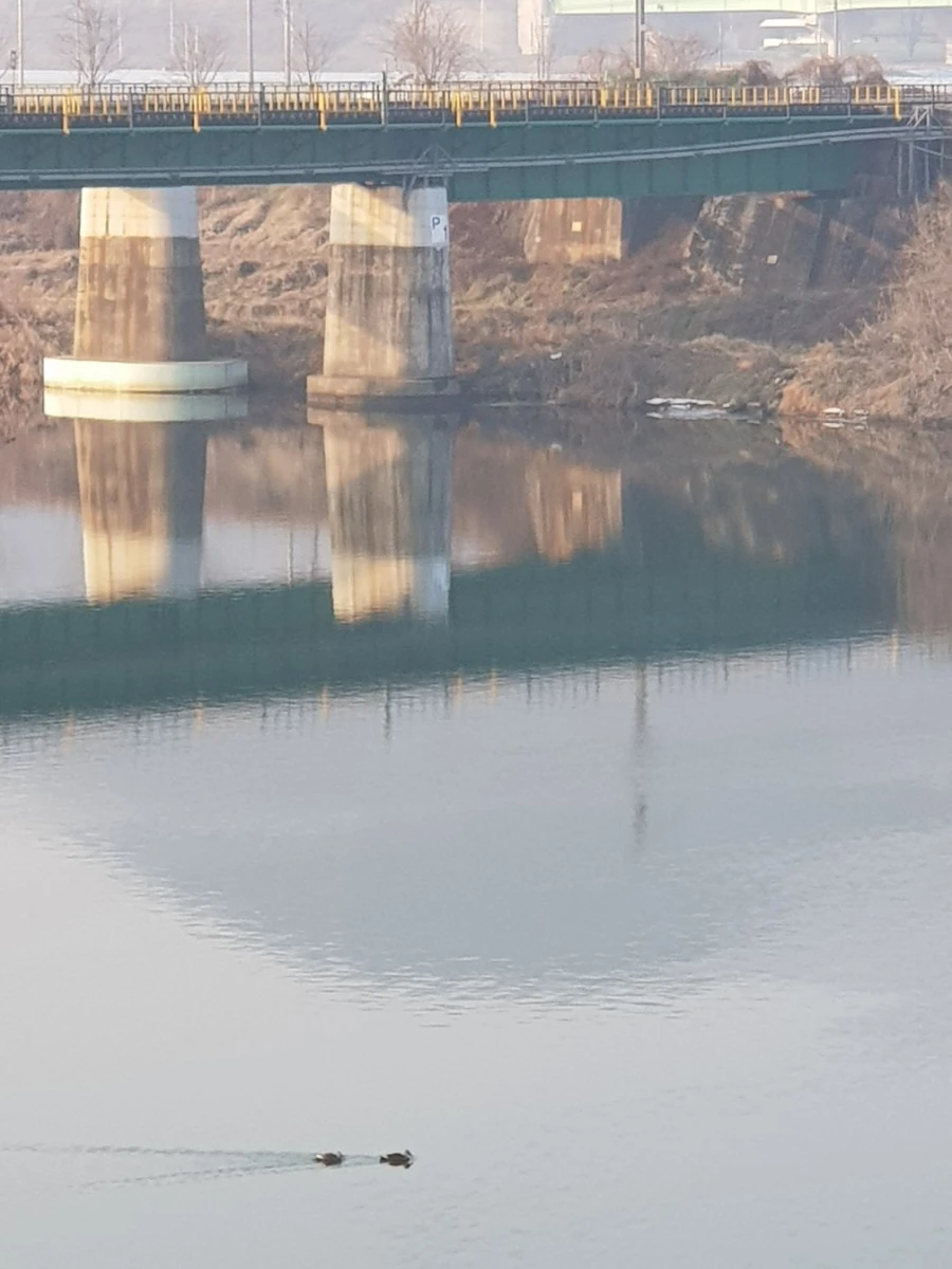 저수지 옆을 지나는 동안, 찬 바람이 쉴 새 없이 밀려 온다.