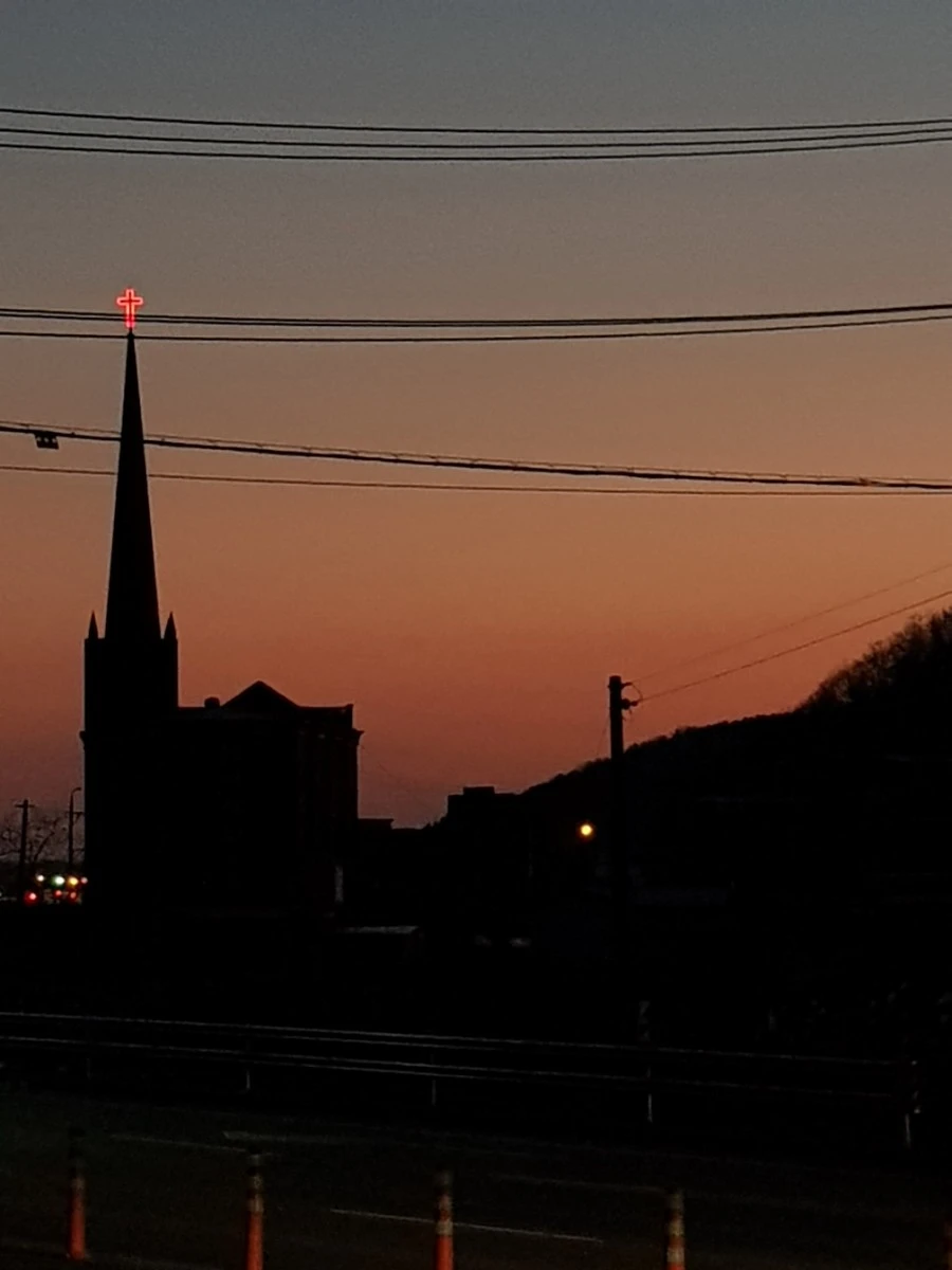 5시 40분경, 드디어 생극면이다. 해가 지는 저녁노을을 배경으로 홀로 우뚝 선 교회 첨탑이 어쩐지 경외롭다.