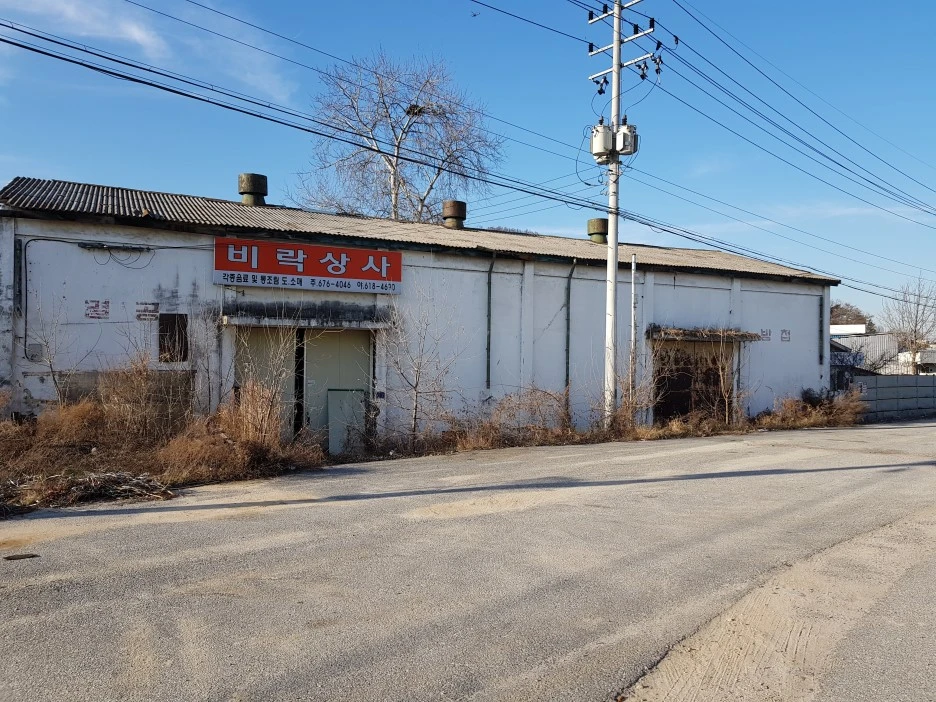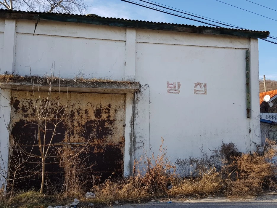죽산교차로에서 큰길을 벗어나 한적한 시골길로 접어들었다. 슬레이트 지붕의 오래된 창고 건물에 '멸공', '방첩'이라 씌여 있다.