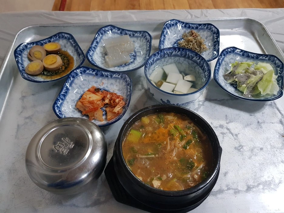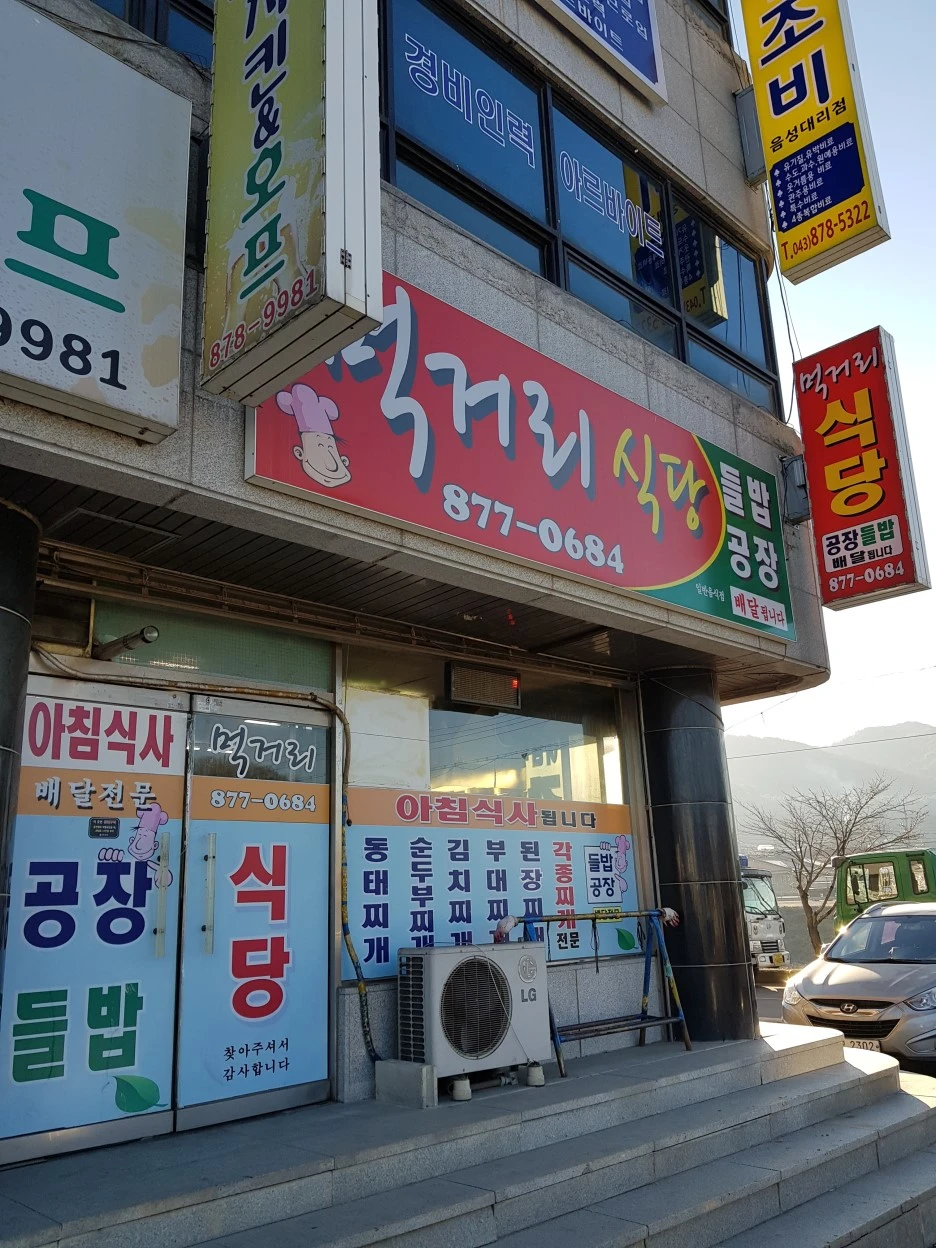 생극면 주변은 공장지대다. 당연히 아침에도 문을 연 식당이 있었다. '공장 들밥 배달전문'이라니, 현장 노동자들을 위한 출장도 되는 모양이다. 인심 좋아 보이는 아주머니께 김치찌개를 주문했다.