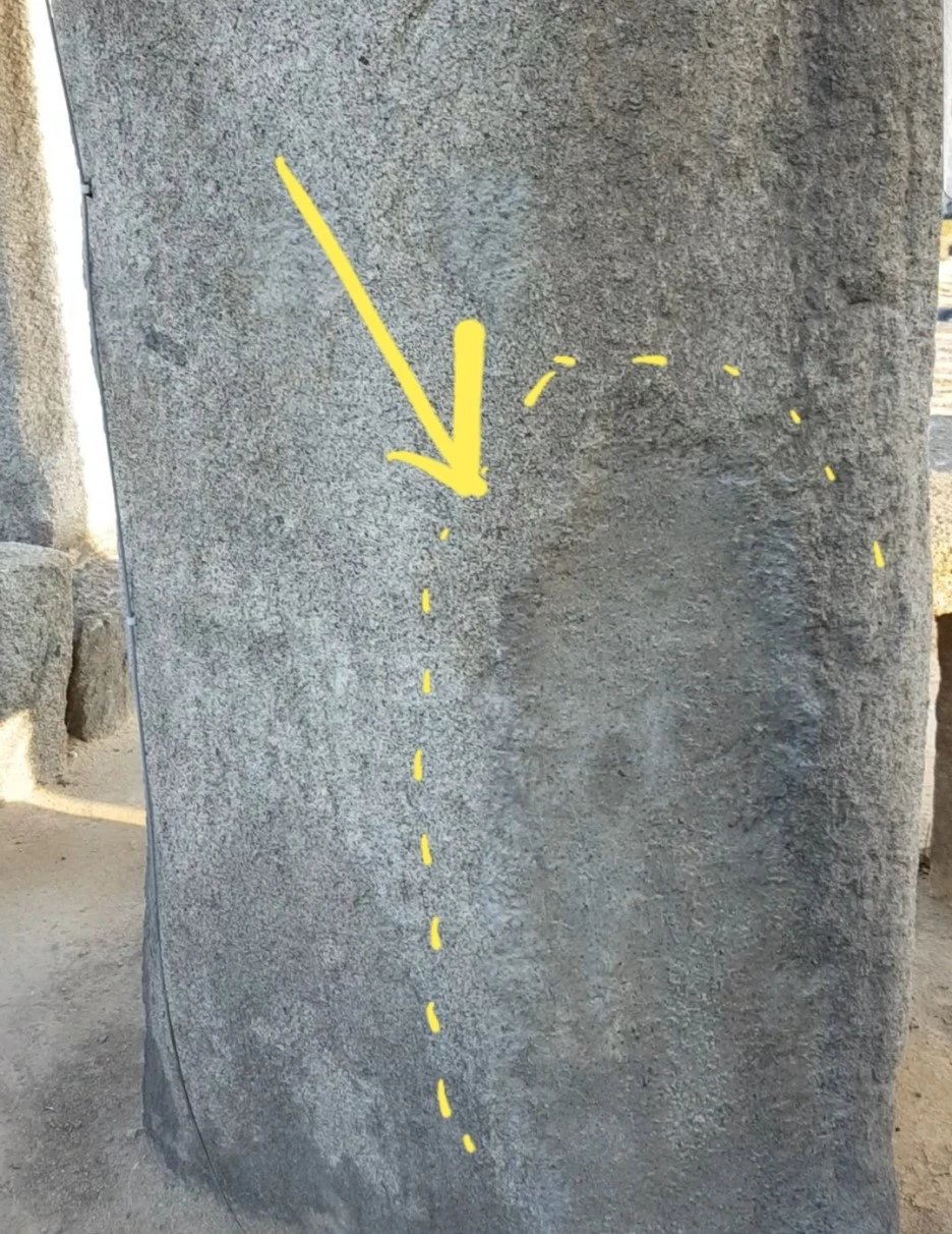 노란색으로 표시한 안쪽, 움푹 들어간 부분이 사람들이 '긁어 먹어' 생긴 흔적이다.