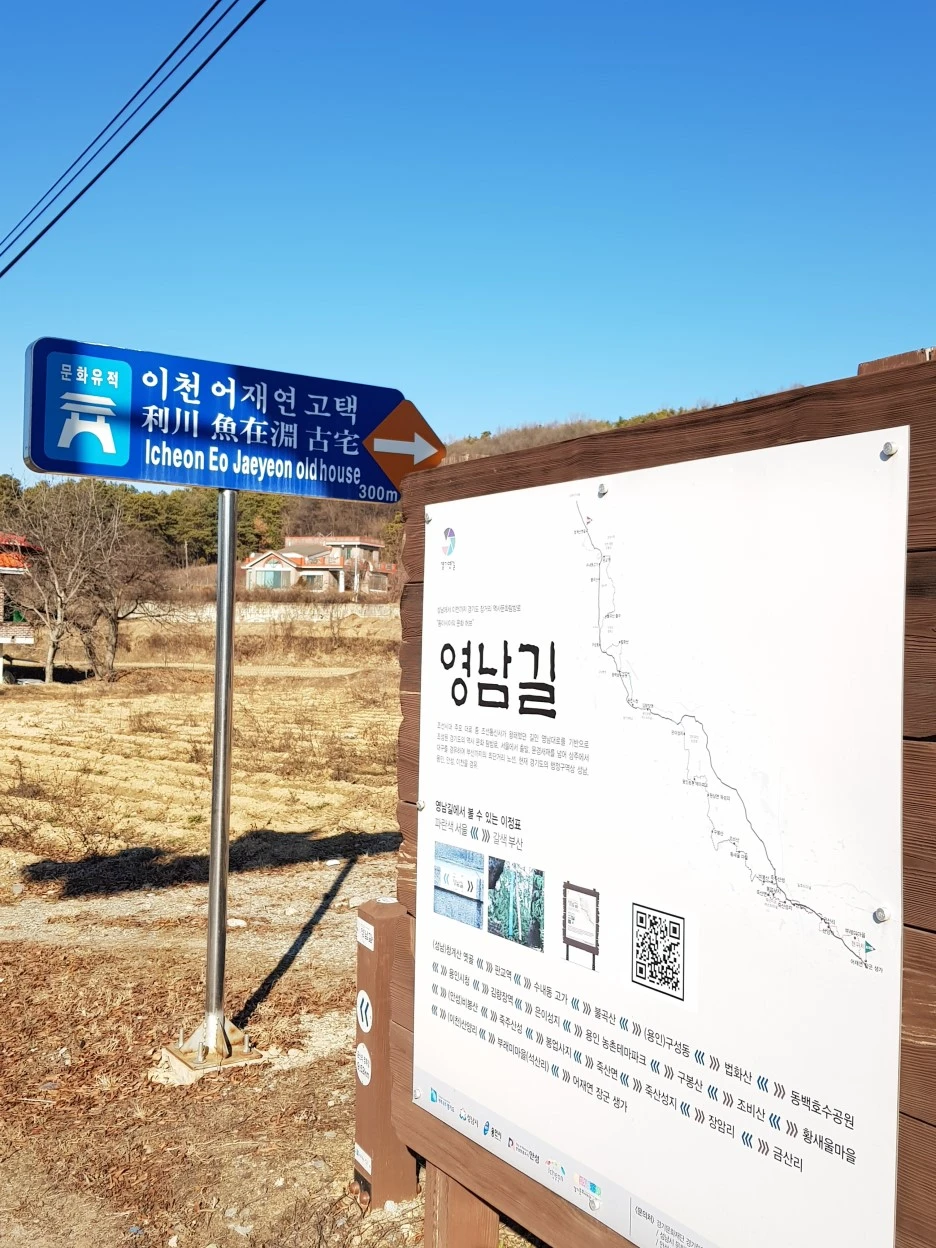 길가에는 지금 걷는 이 길이 '영남길', 즉 영남대로임을 알리는 간판이 서 있다. 멀지않은 곳에 어재연장군 고택이 있다.