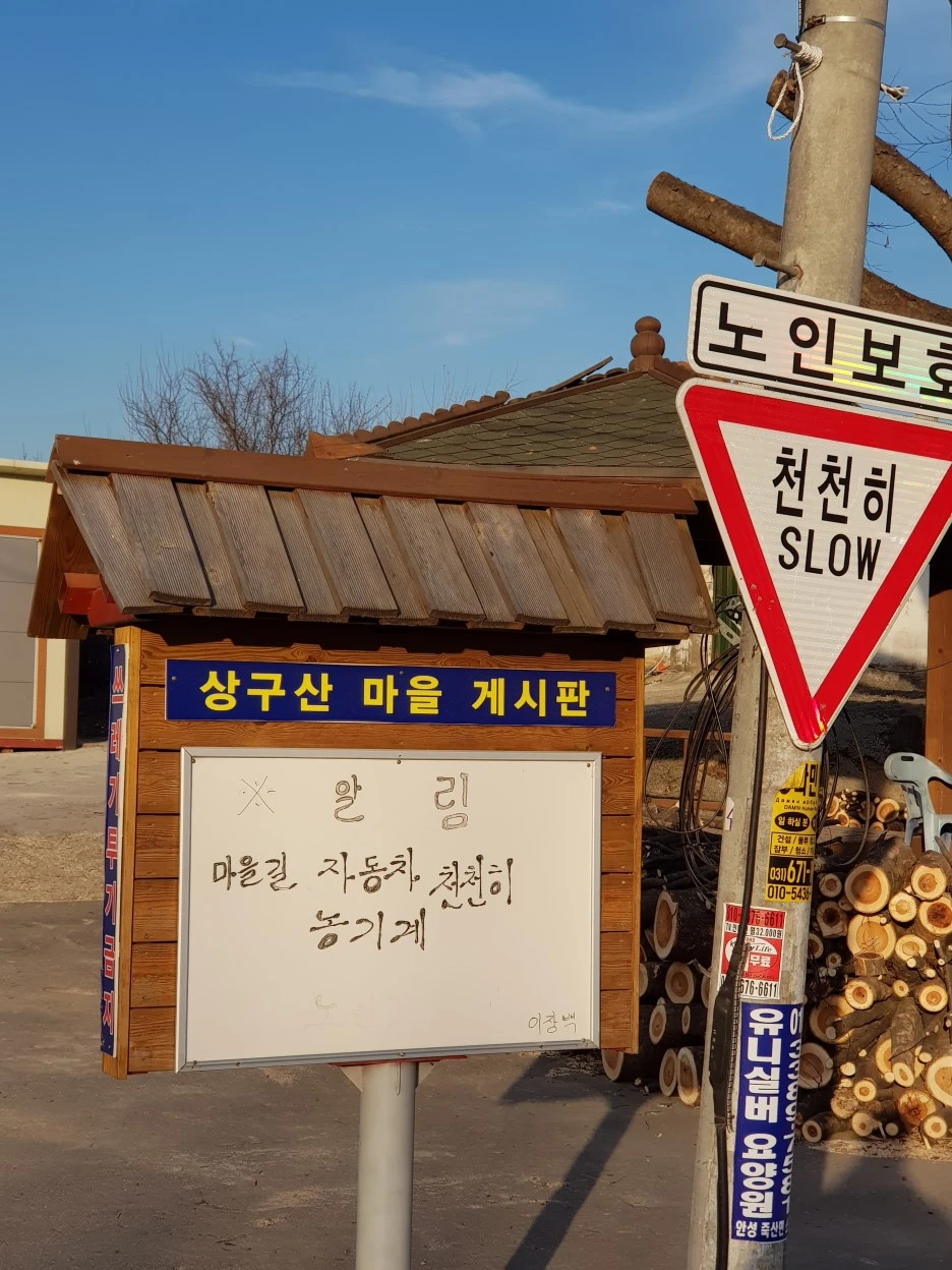 대로변 내내 두근대던 가슴이 마을길로 접어들자 조금씩 가라앉았다. 마을 게시판에 손으로 적어 둔, 아마도 이장님이 썼을 글씨체가 정겹다.