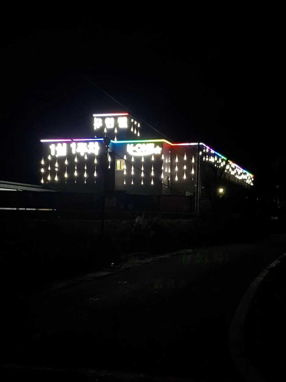 드디어 저 앞에 오늘의 숙소로 삼은 모텔이 보인다. 휘황찬란한 불빛이 어두운 주변과 대비되어 눈에 확 띄었다.