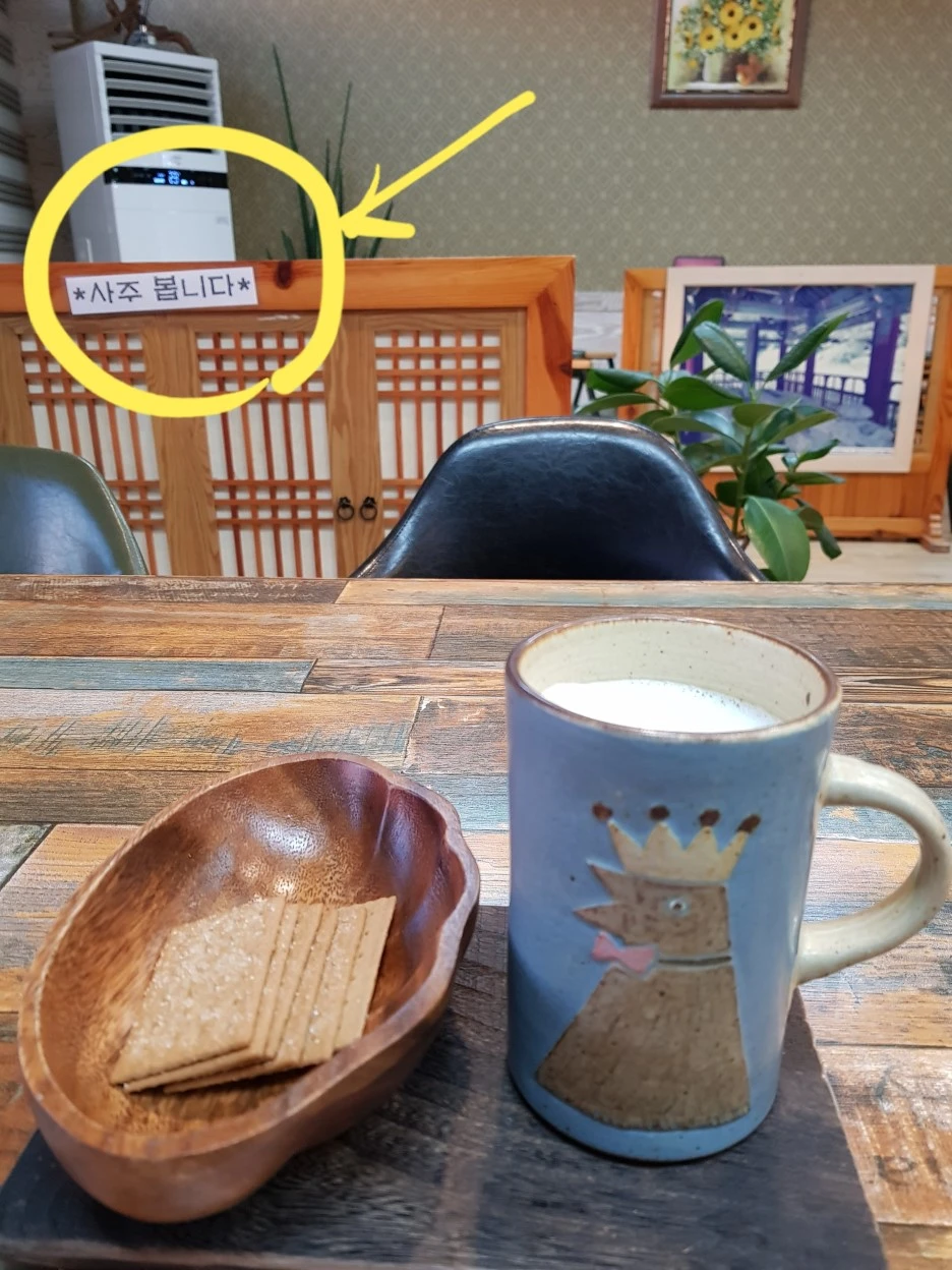 숙소로 바로 들어가기에는 시간이 꽤 남았다. 앞에 보이는 찻집으로 들어섰다. 50대 초반의 주인 아저씨께 고구마라떼를 주문했다. 따뜻한 잔을 움켜 쥐고 지는 해를 바라 본다.