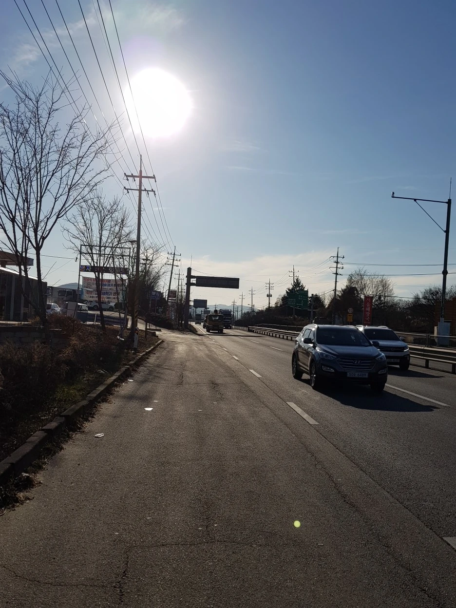 오늘 일정을 마치기 전, 마지막으로 한번 더 대로변을 따라 걸어야 한다. 여기는 차들이 더 빠르게 지나간다.