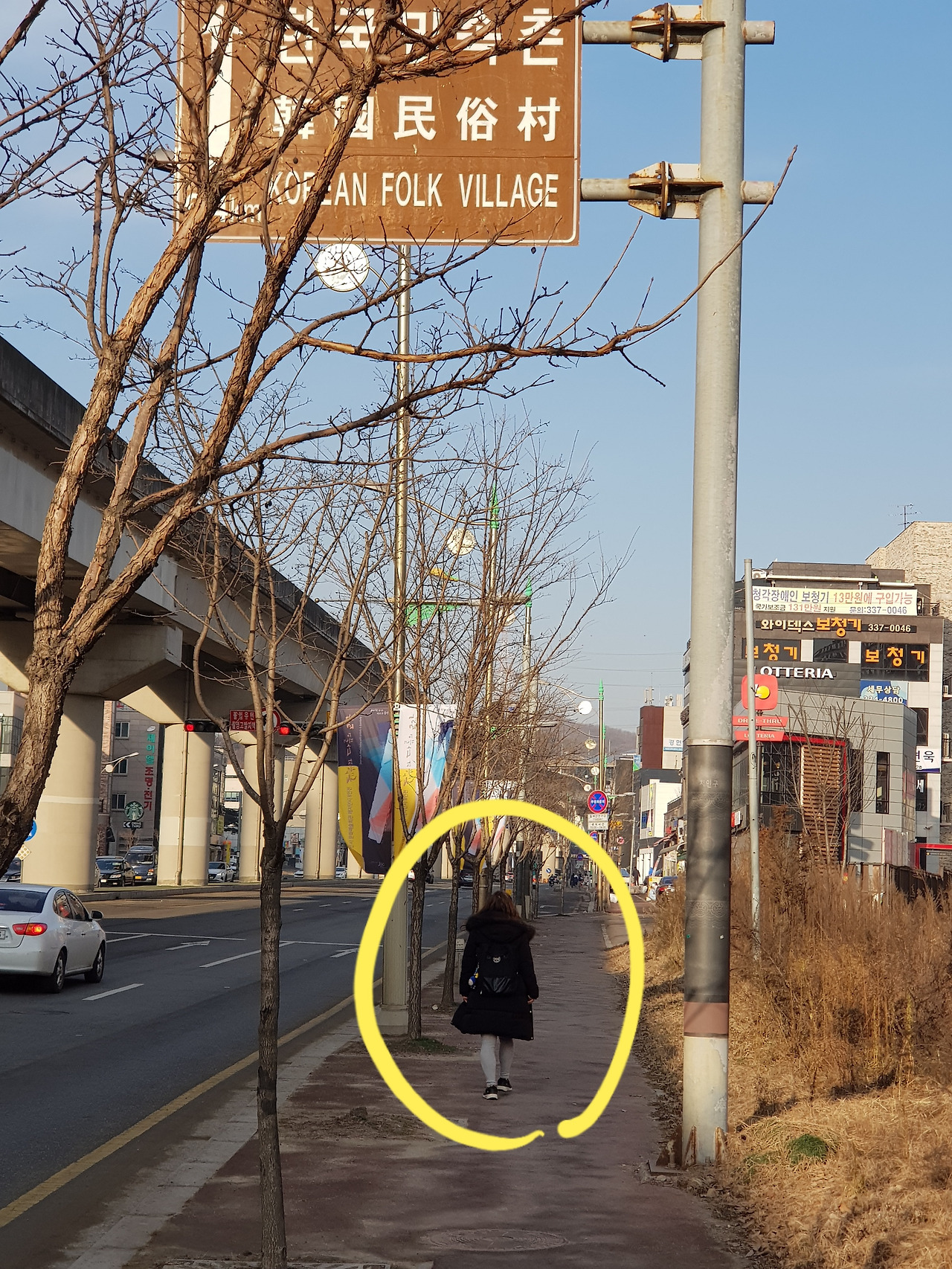여기부터는 낯이 익다. 모터사이클을 타고 지나던 길이다. 저 언덕을 넘어가면 보정역이 나올 것이다. 보정역부터는 지하철 분당선과 이 길이 일치한다. 분당을 관통해 성남 구 시가를 거쳐 서울 잠실까지 이어진다.
