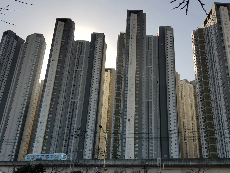에버라인의 종점(기점) 기흥역 근처에는 고층아파트가 빼곡하게 들어섰다.