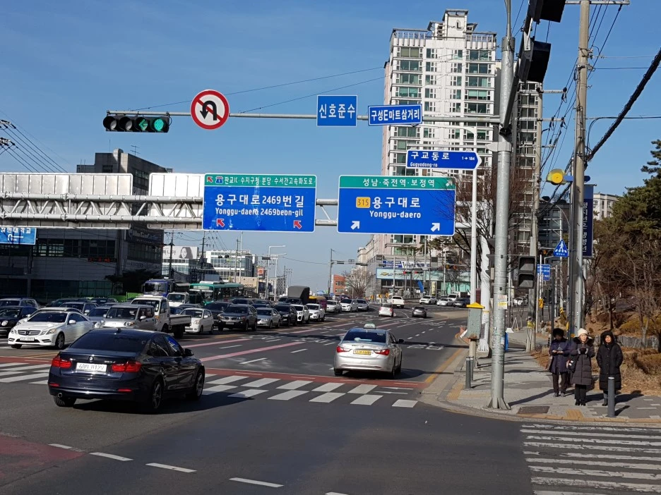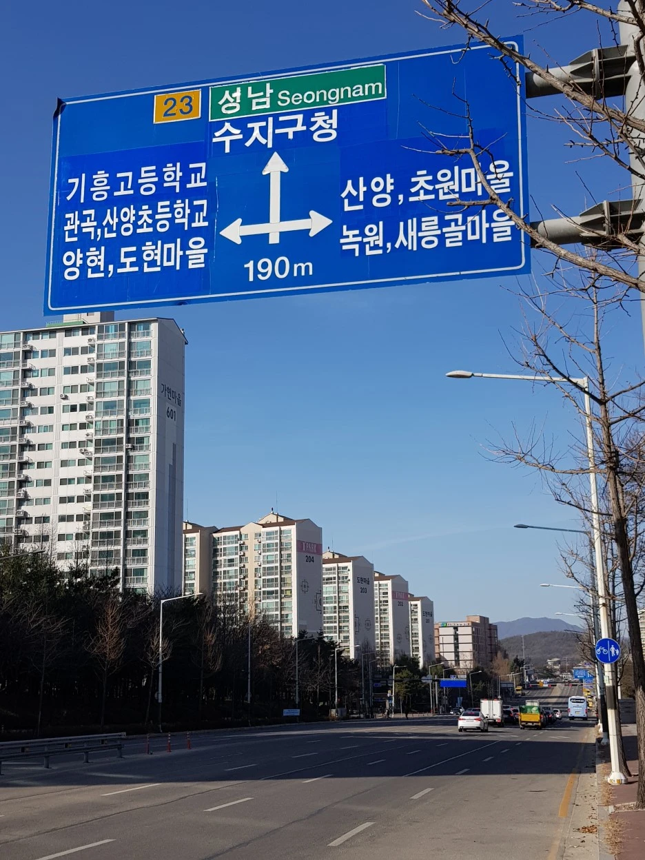기흥역에서 우회전하여 성남방향으로 접어들었다. 이 길을 따라 쭉 올라가면 분당이 나온다.