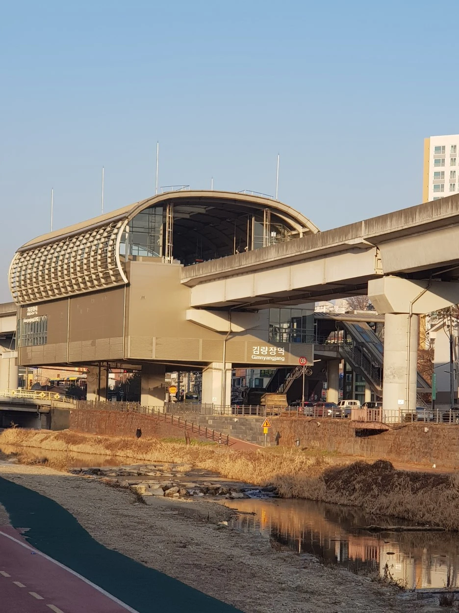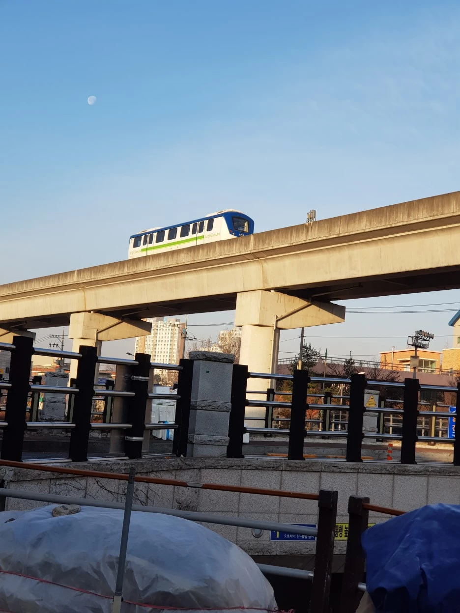 숙소가 있던 골목을 벗어나 금학천변으로 올라서면 에버라인이 보인다. 한 량짜리 경전철이 앙증맞고 귀엽게 지나간다.