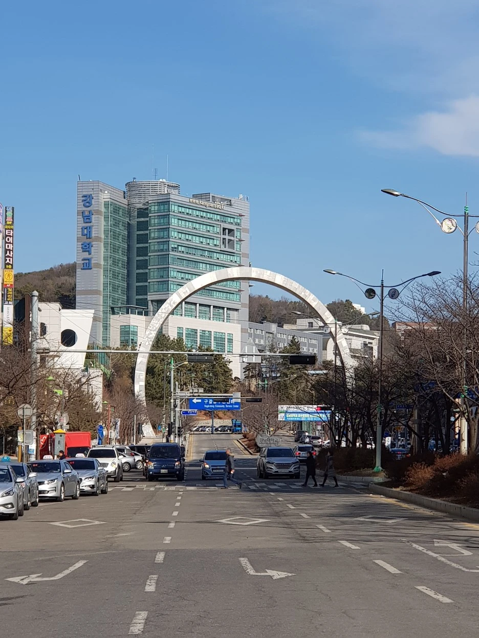 강남대학교 앞을 지나간다. 강남대는 사회복지 관련 학과가 유명하다. 우리나라에서 사회사업학과를 최초로 개설한 곳이다. 서울 강남에서 시작된 '강남사회복지학교'의 교명이 용인으로 캠퍼스를 옮긴 지금까지 이어지고 있다.