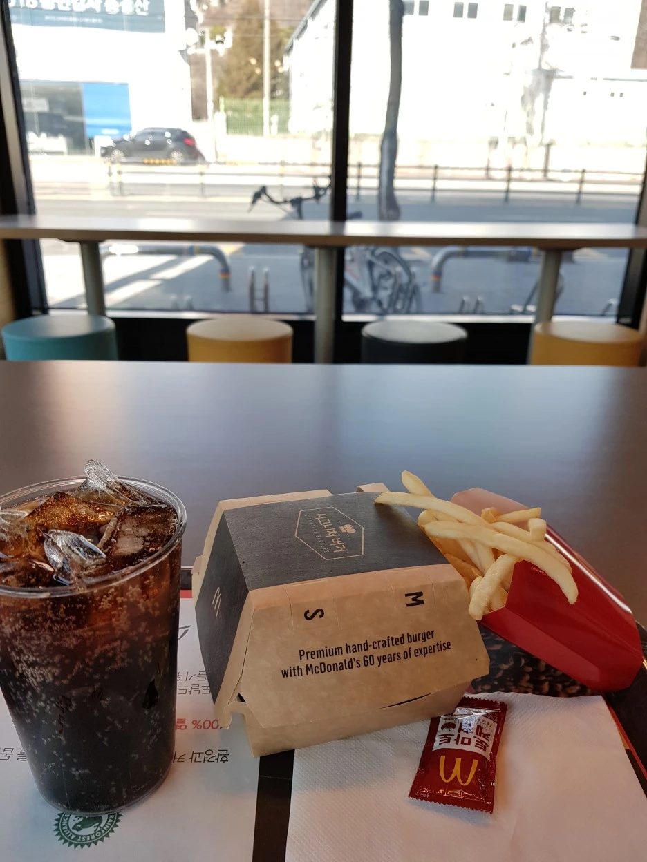 점심때가 되었다. 어정역 근처 맥도날드로 들어섰다. 서울까지 거진 다 온 마당에 새삼 별미를 찾을 일도 아니었다. 그나마 제일 비싼 메뉴로 스스로를 토닥인다.