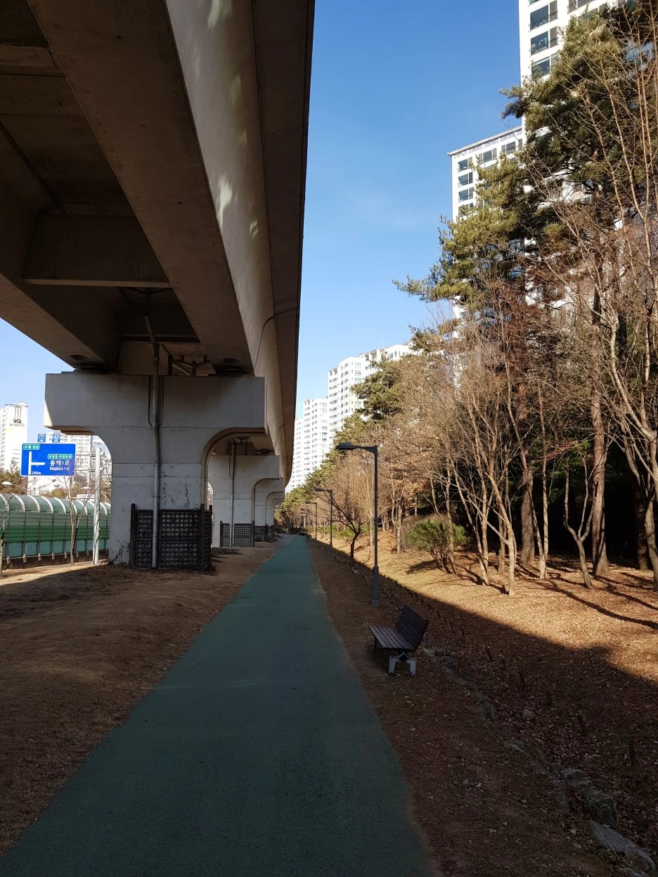 햇살이 강해 가급적 에버라인이 만드는 그늘 아래로 걸었다. 아파트와 상가 단지, 공원이 적절한 배치로 이어졌다.